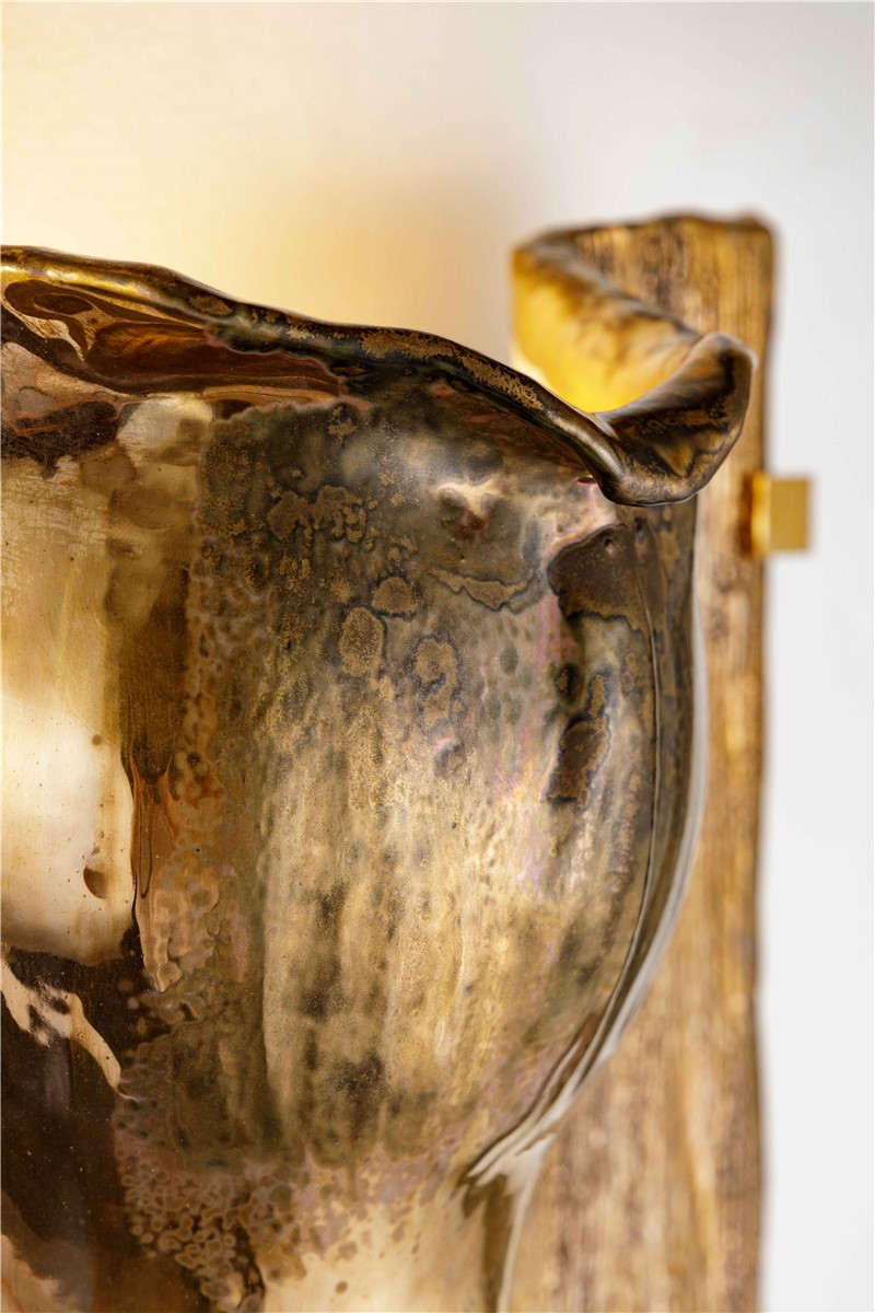Wall lamp in square shape in maiolica and brass. Z646 is in gold or nickel finish