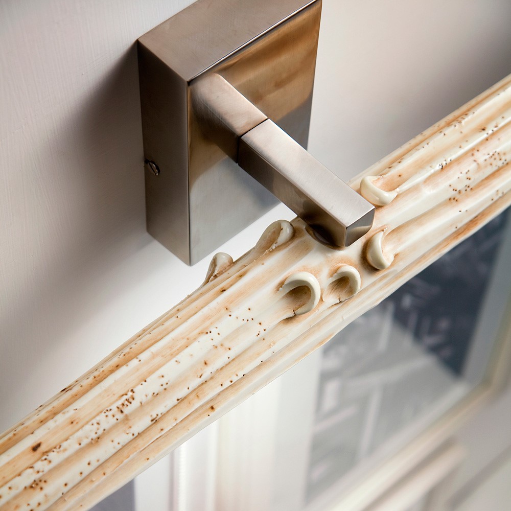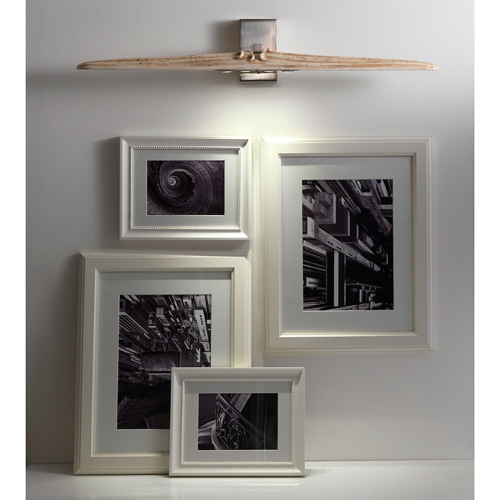 Wall lamp with hand engraved majolica and brushed chromed brass.