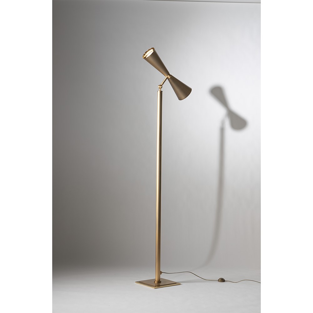 Brass in rose gilded matt floor lamp with 2 lights on the 2 cups