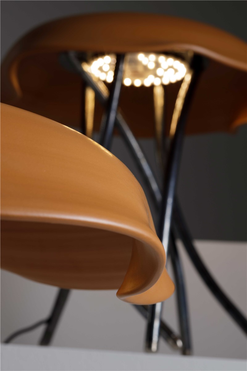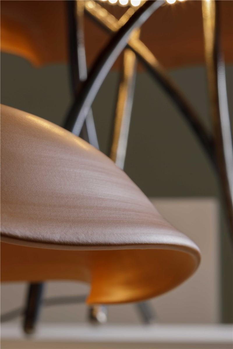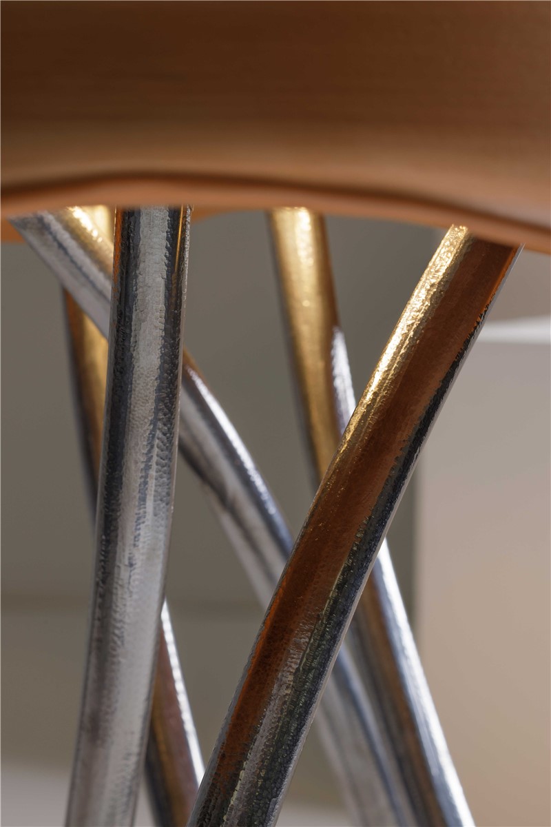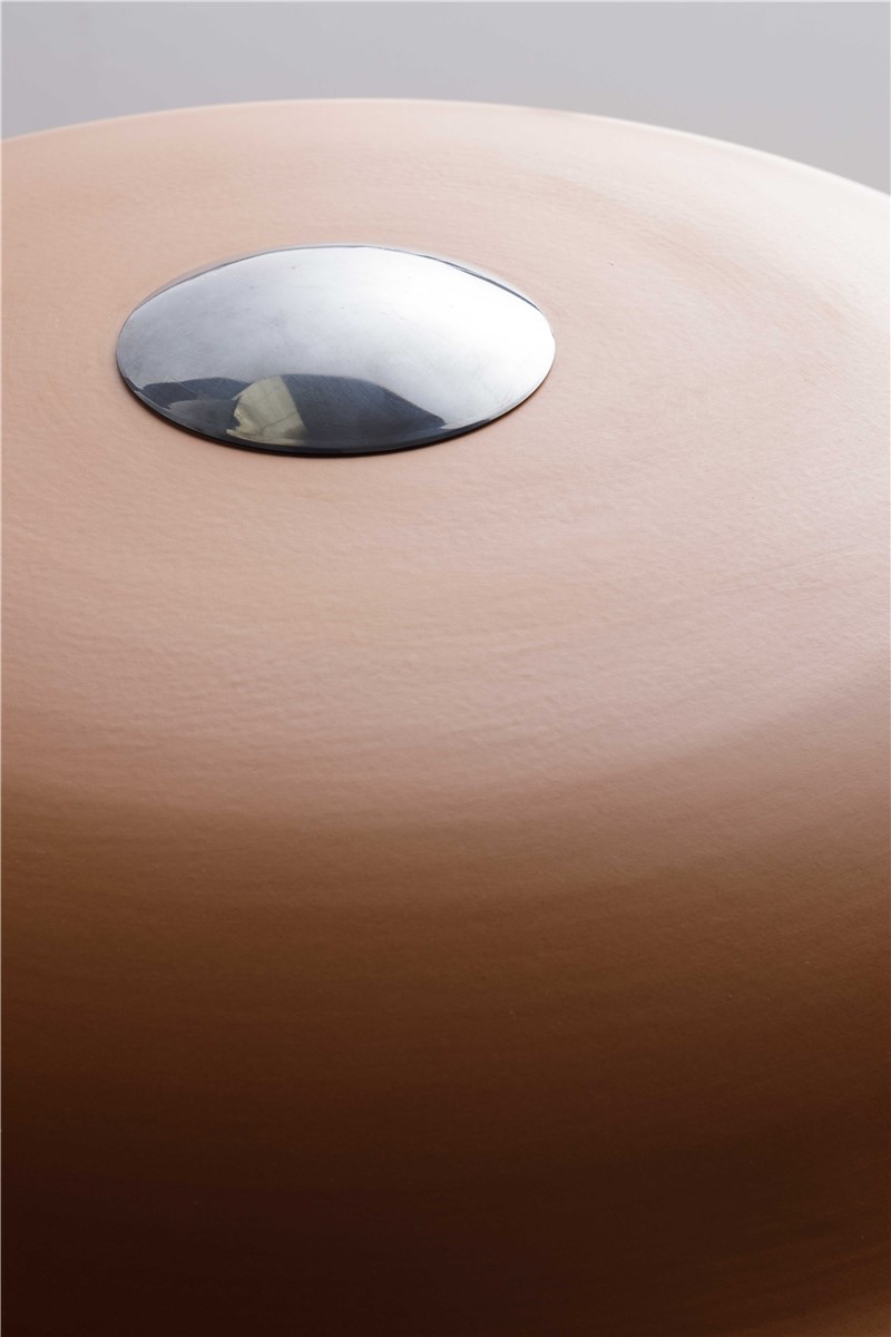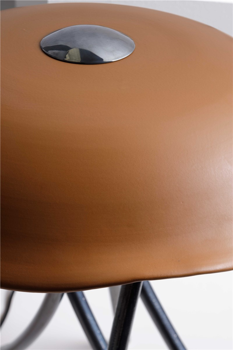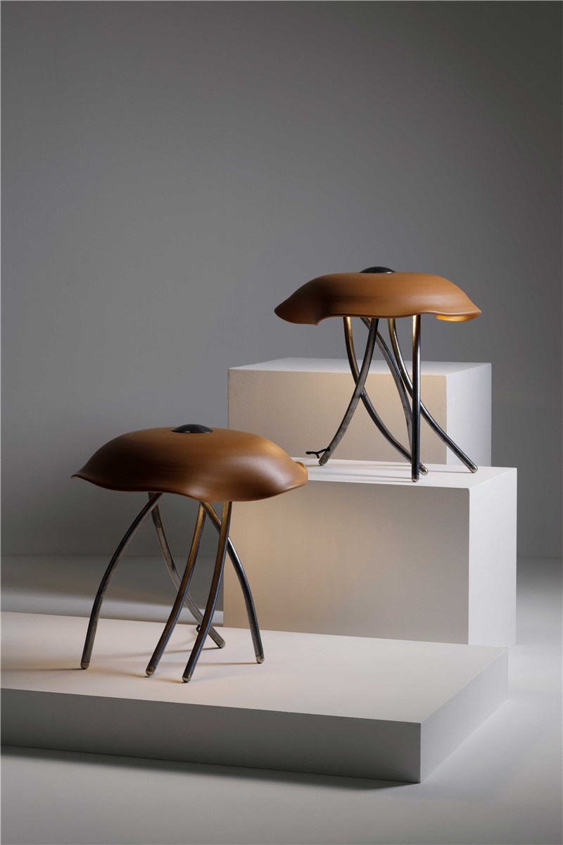 Table lamp with lampshade in majolica hand decorated with structure in pewter silver finish with small details in nickel brass