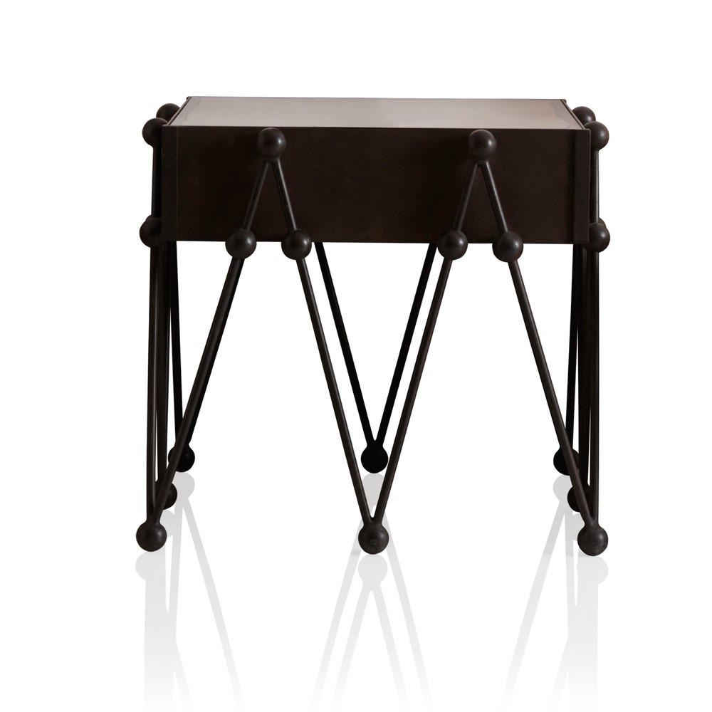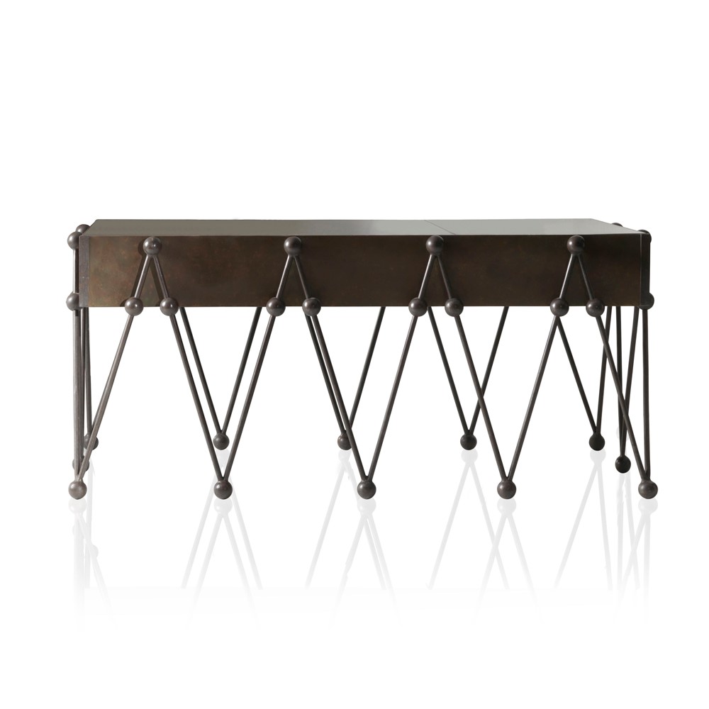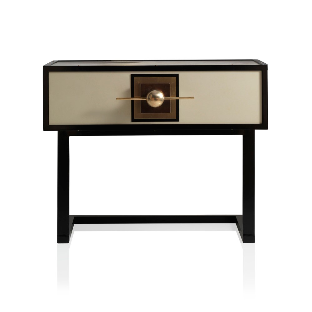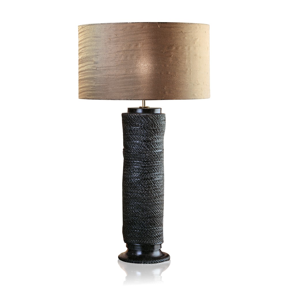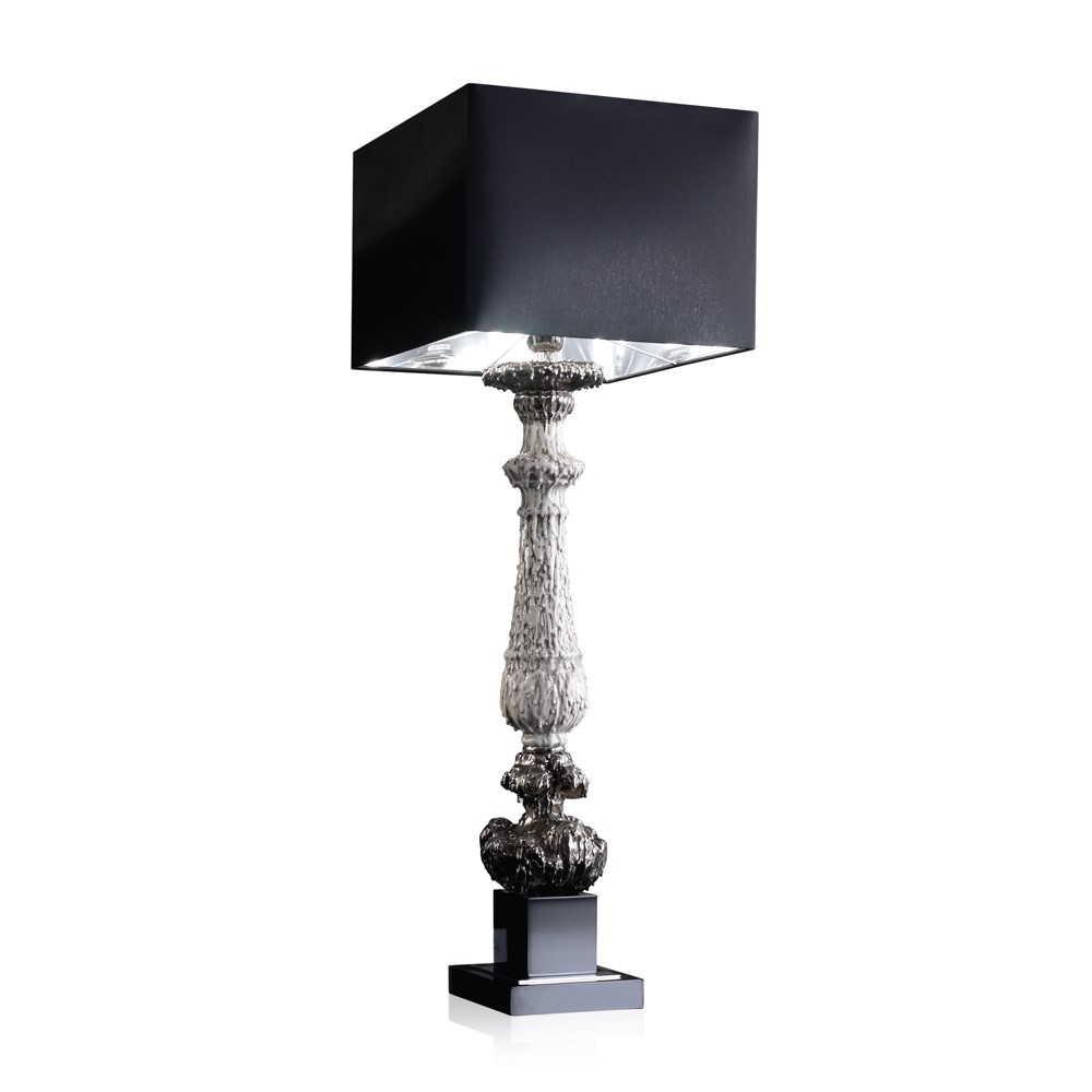 Table lamp in brass and bronze castings in natural finish with alabaster.