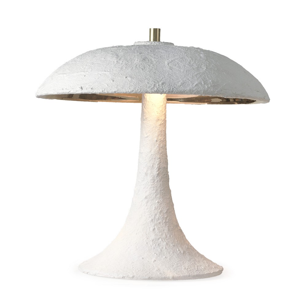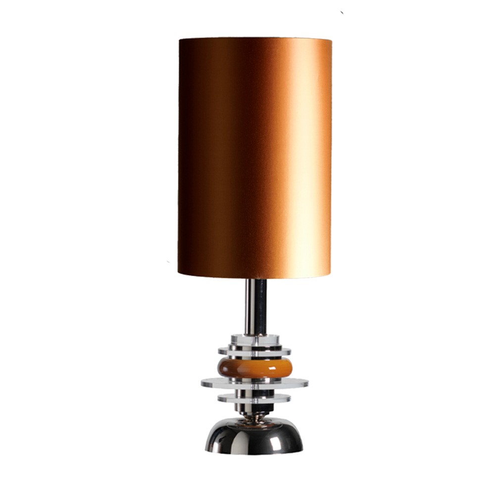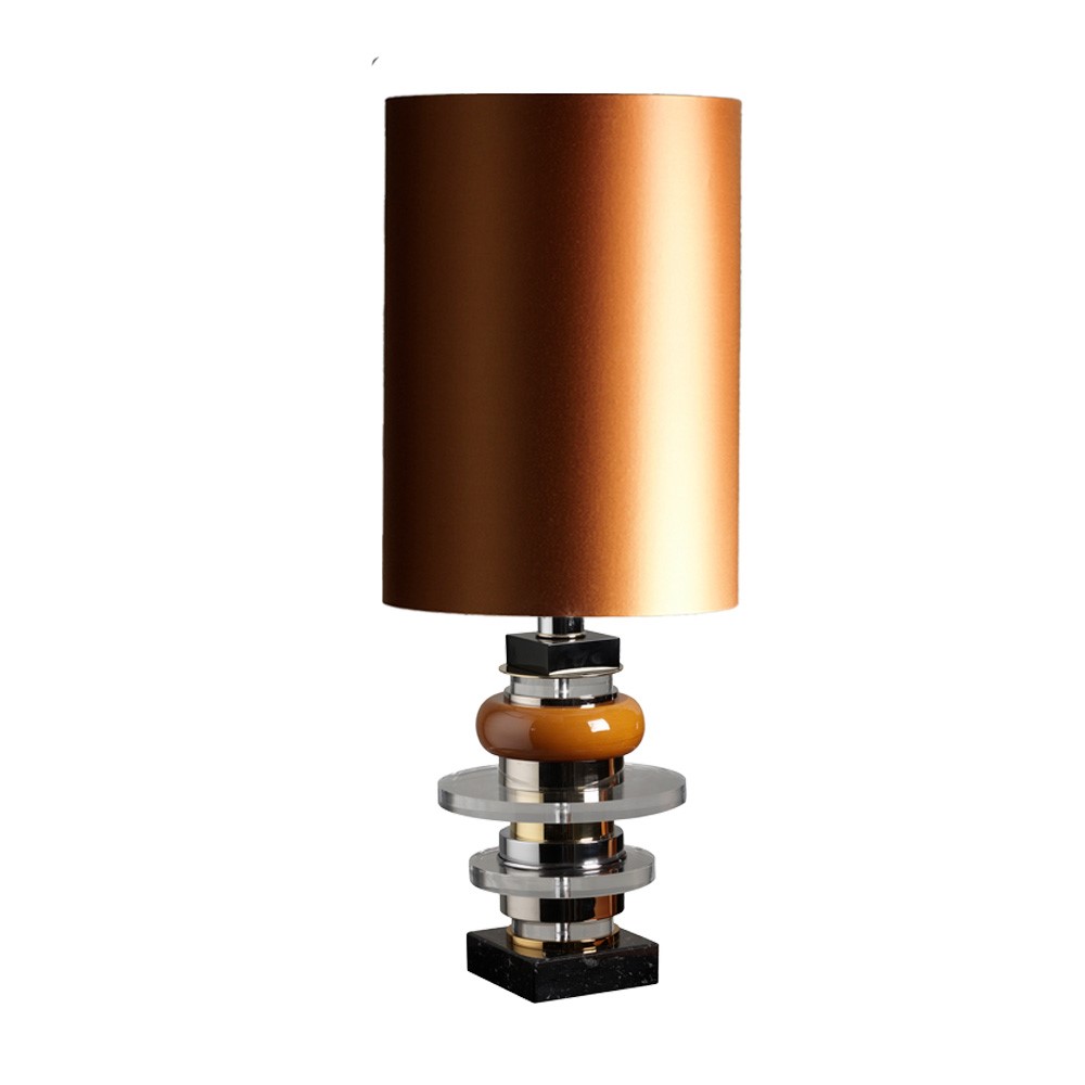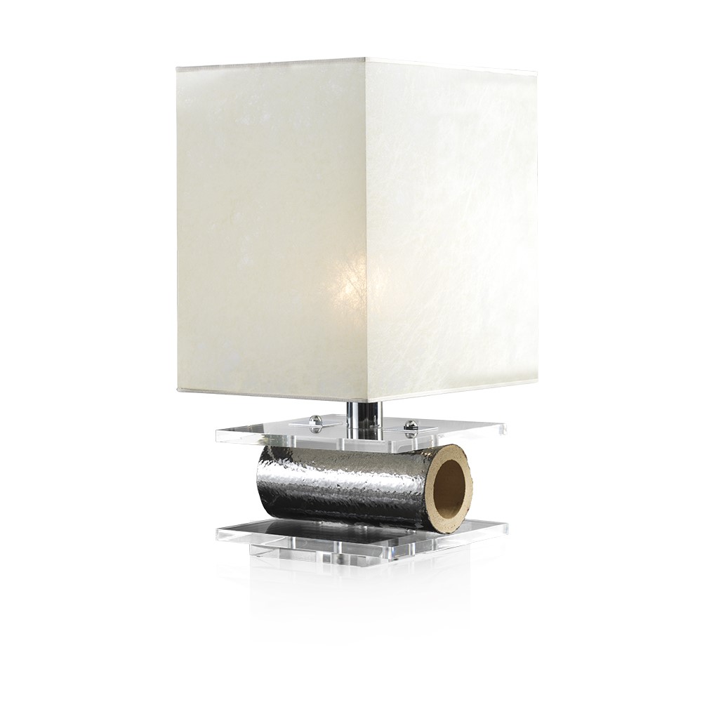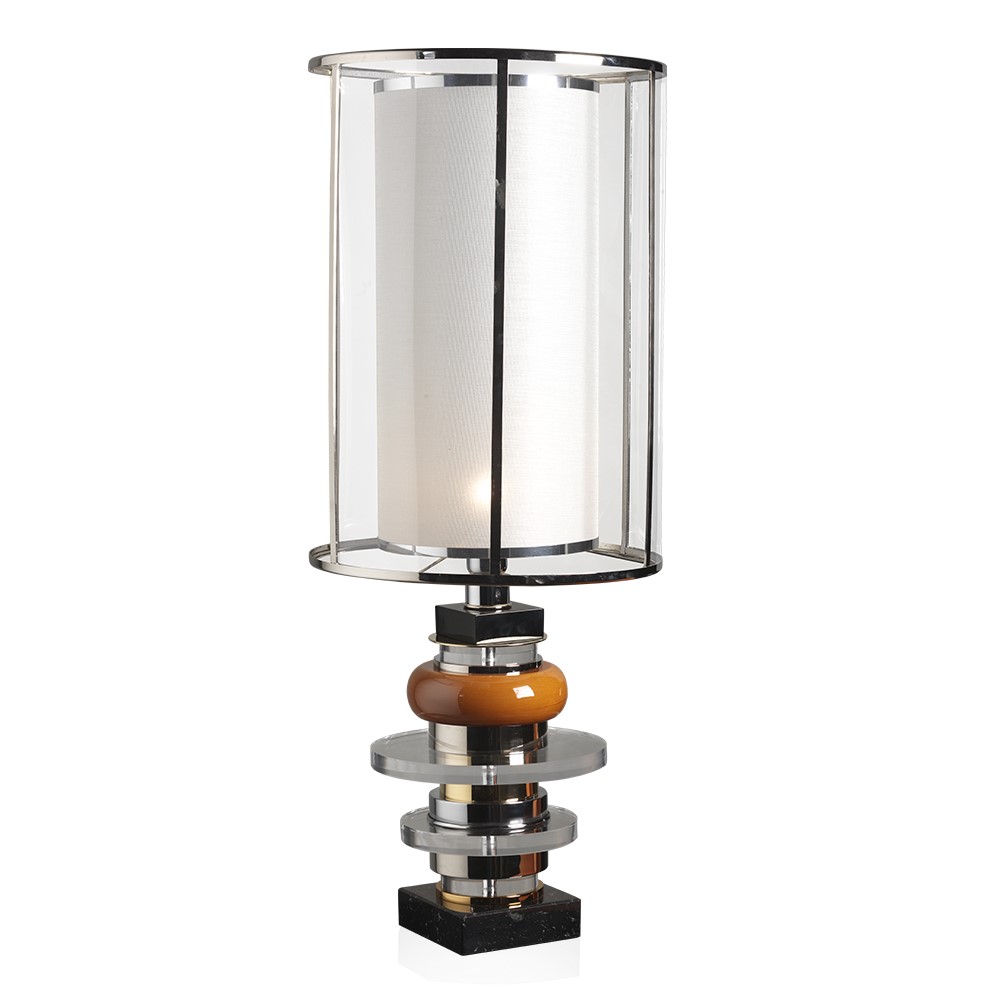 Lamp in hand glazed majolica with details in nickel plated brass. Lampshade in black inside gold and ivory.