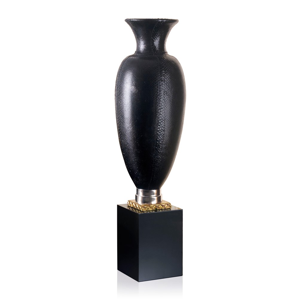 Hand engraved majolica vase.