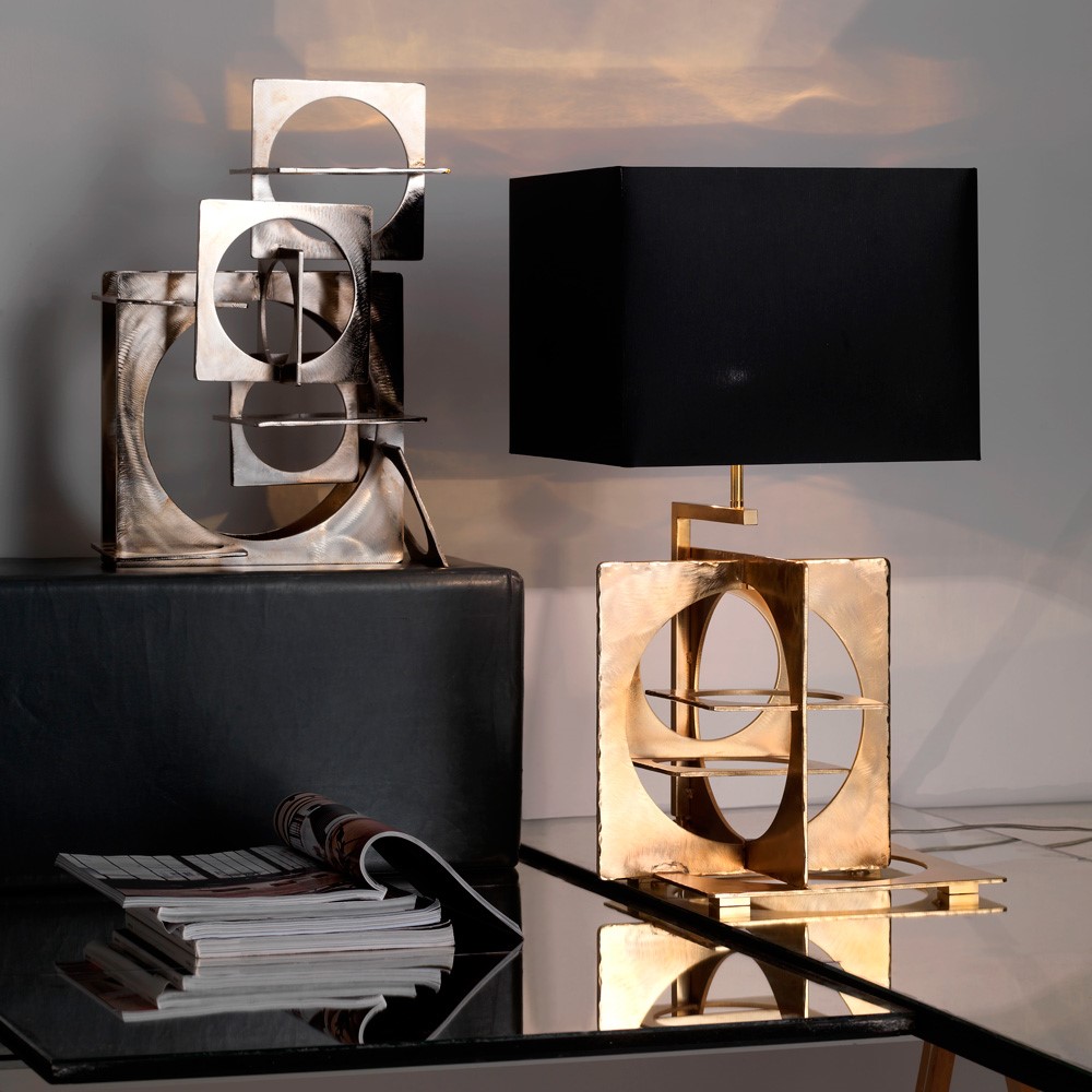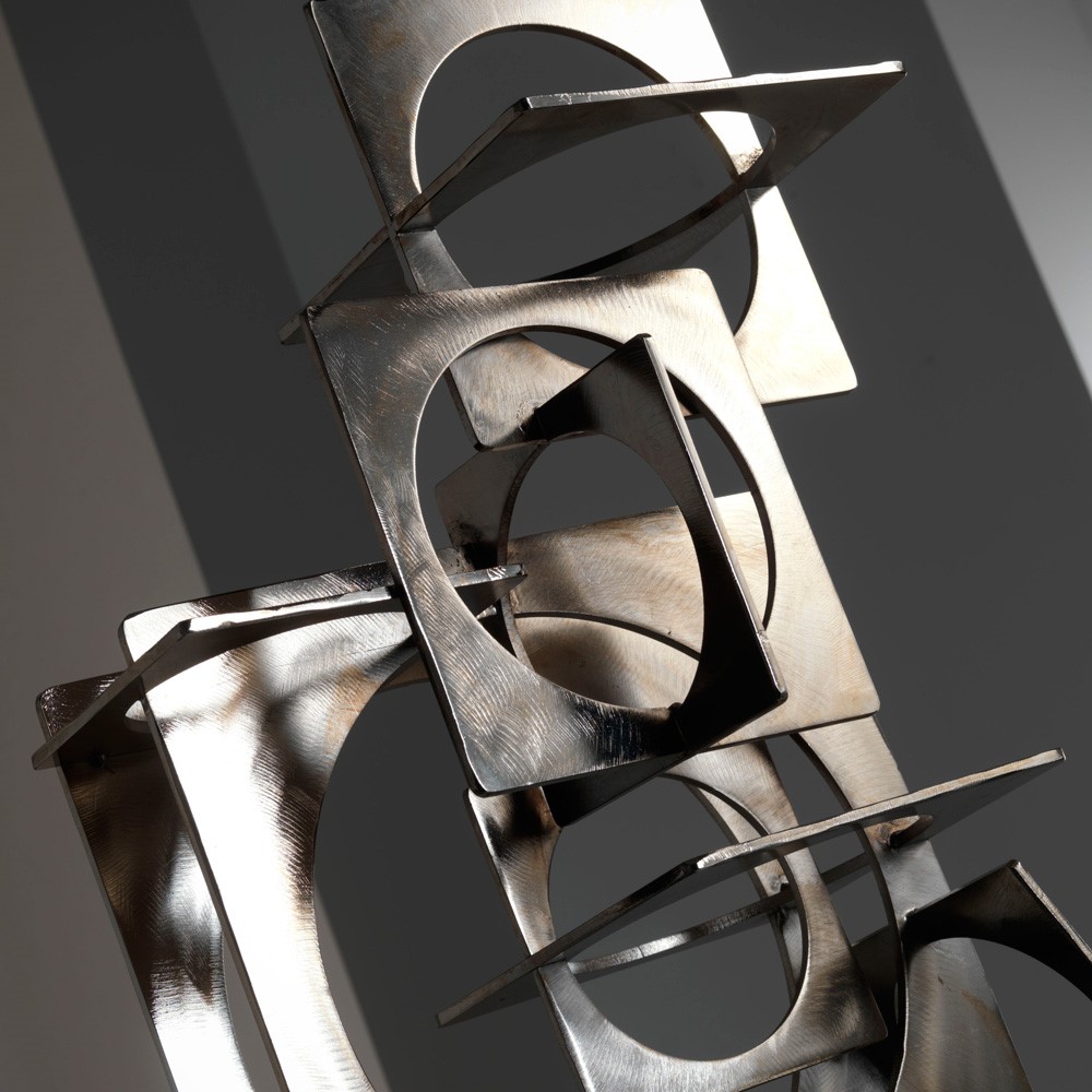 Hand emery and engraved iron sculpture with aged chrome finish.