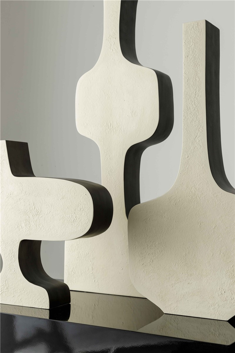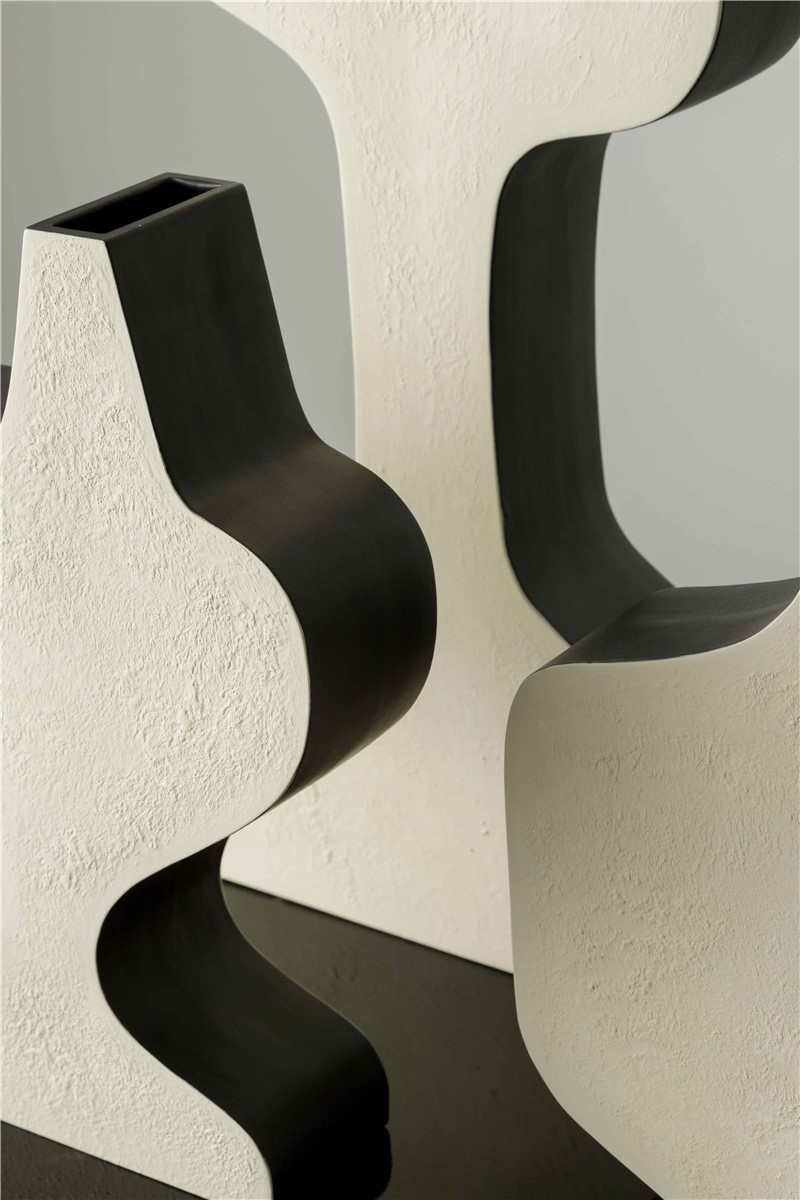 Sculptural ceramic vase handpinted in ivory and black