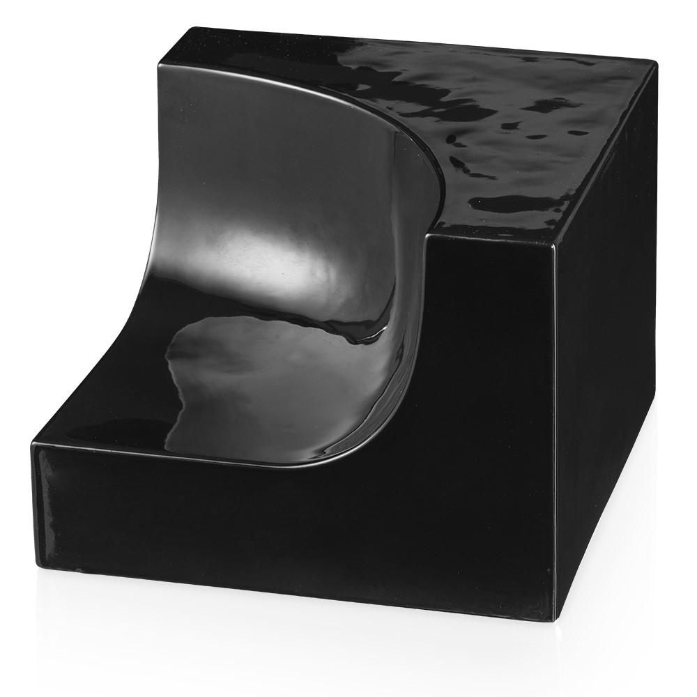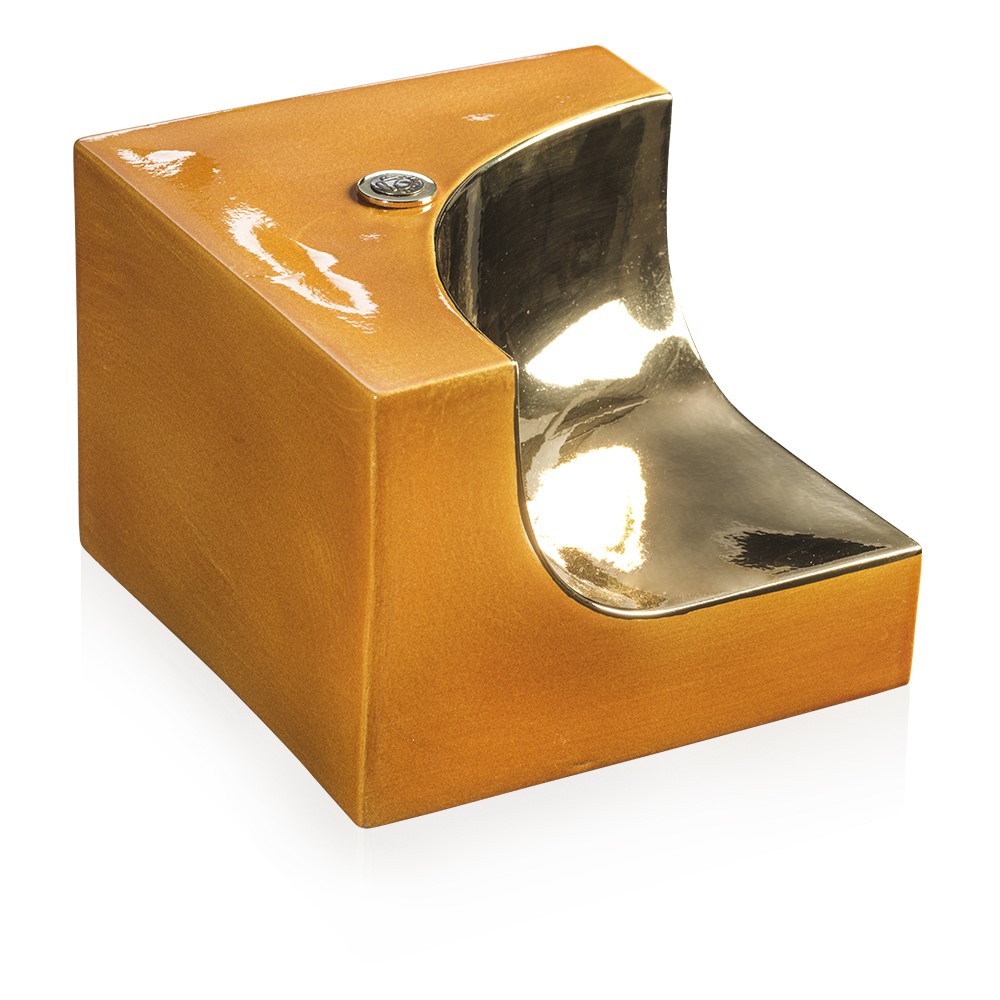 Small bowl in black glaze majolica and plated with gold.