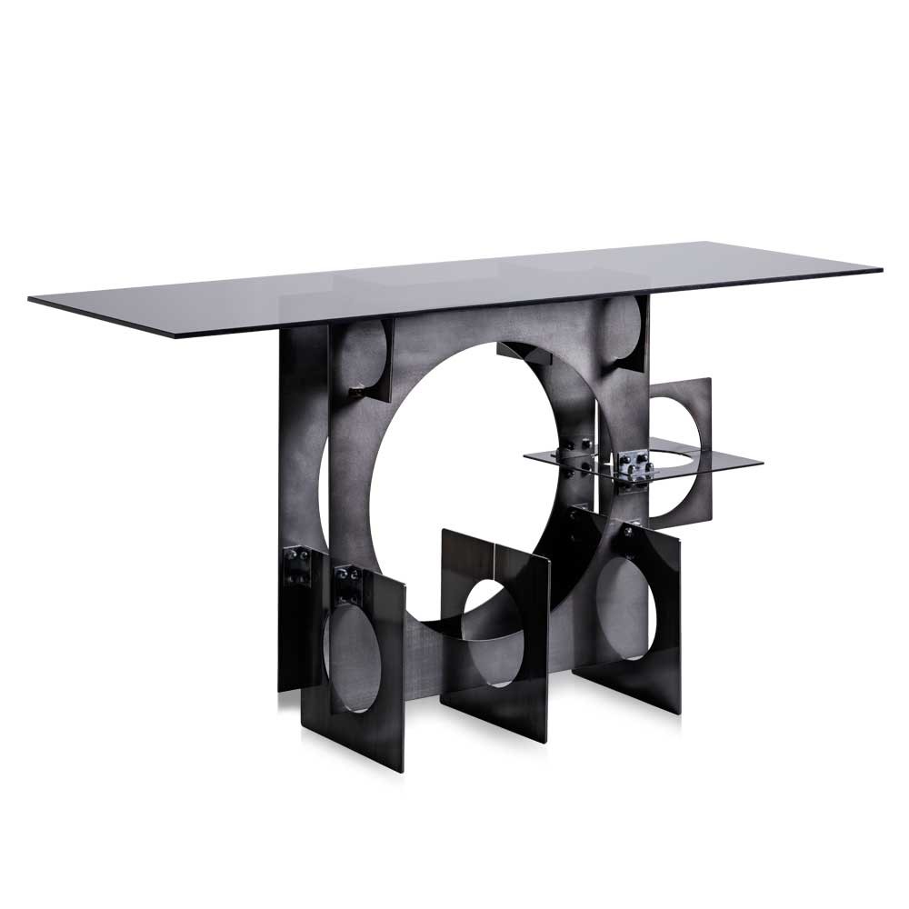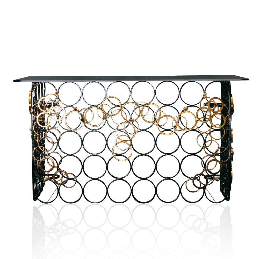 This console table with a clean and linear taste is composed of majolica balls turned by hand and glazed in glossy white with a pearly effect, are placed at the centre of the structure in order to divide the upper part from the lower one. The two bases and the top are in glossy white lacquered wood. For its linear design is suitable for contemporary environments but also for classic environments to give a soft contrast. In addition to the living areas, it can furnish corridors and entrances. Its dimensions in photo are 150x50x90h but on request it can be customized and made even in giant extra-size.