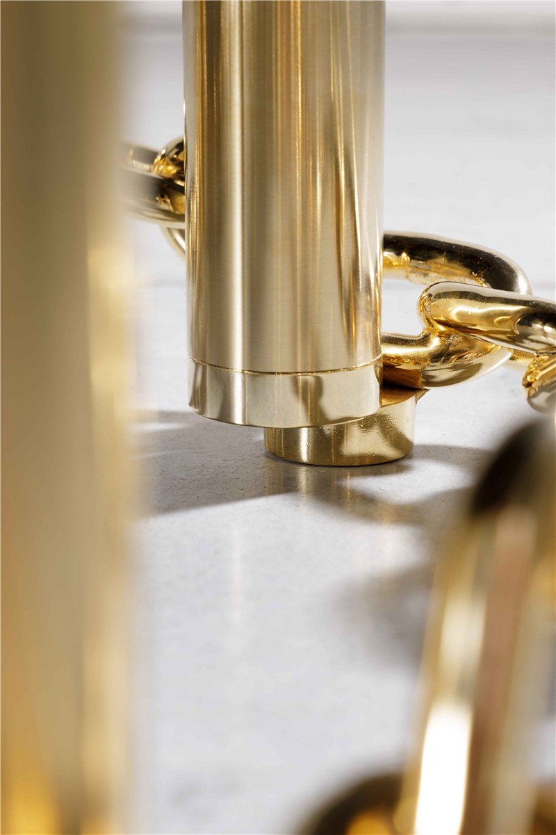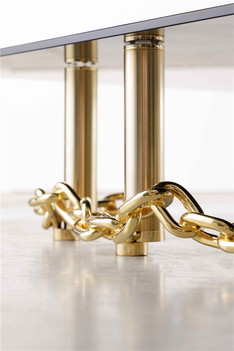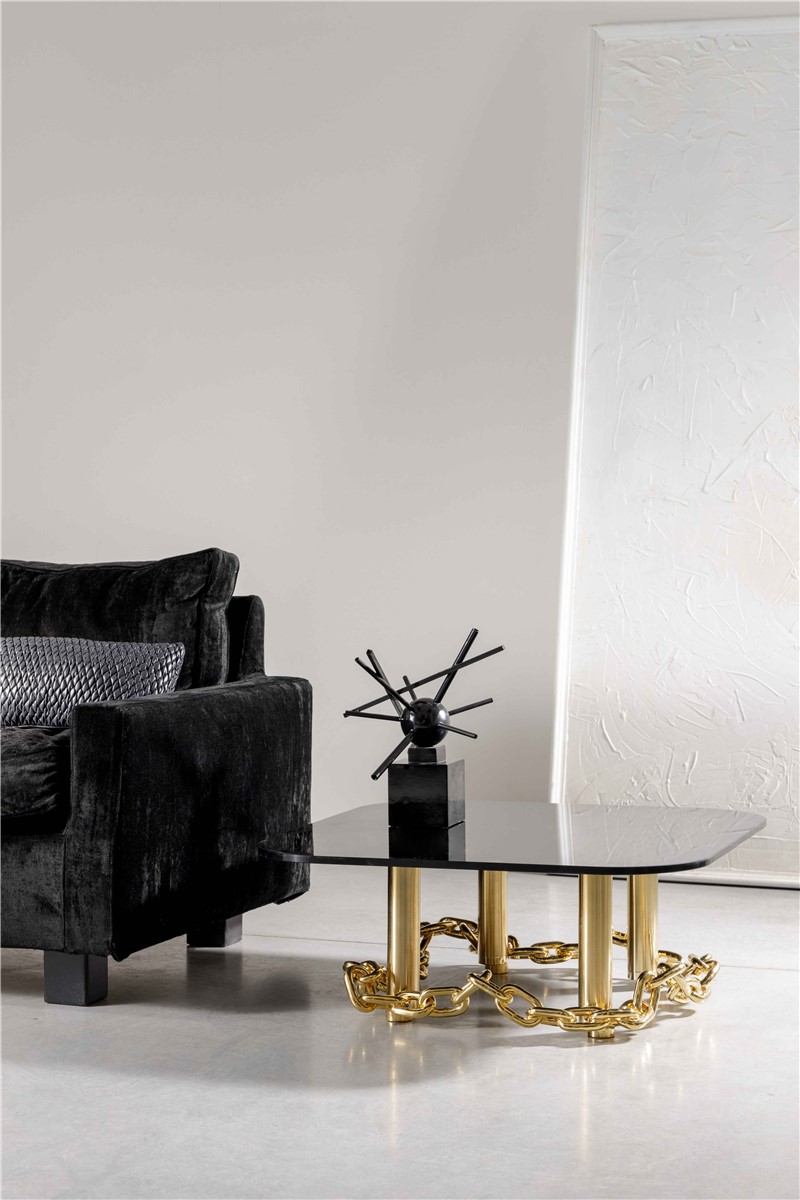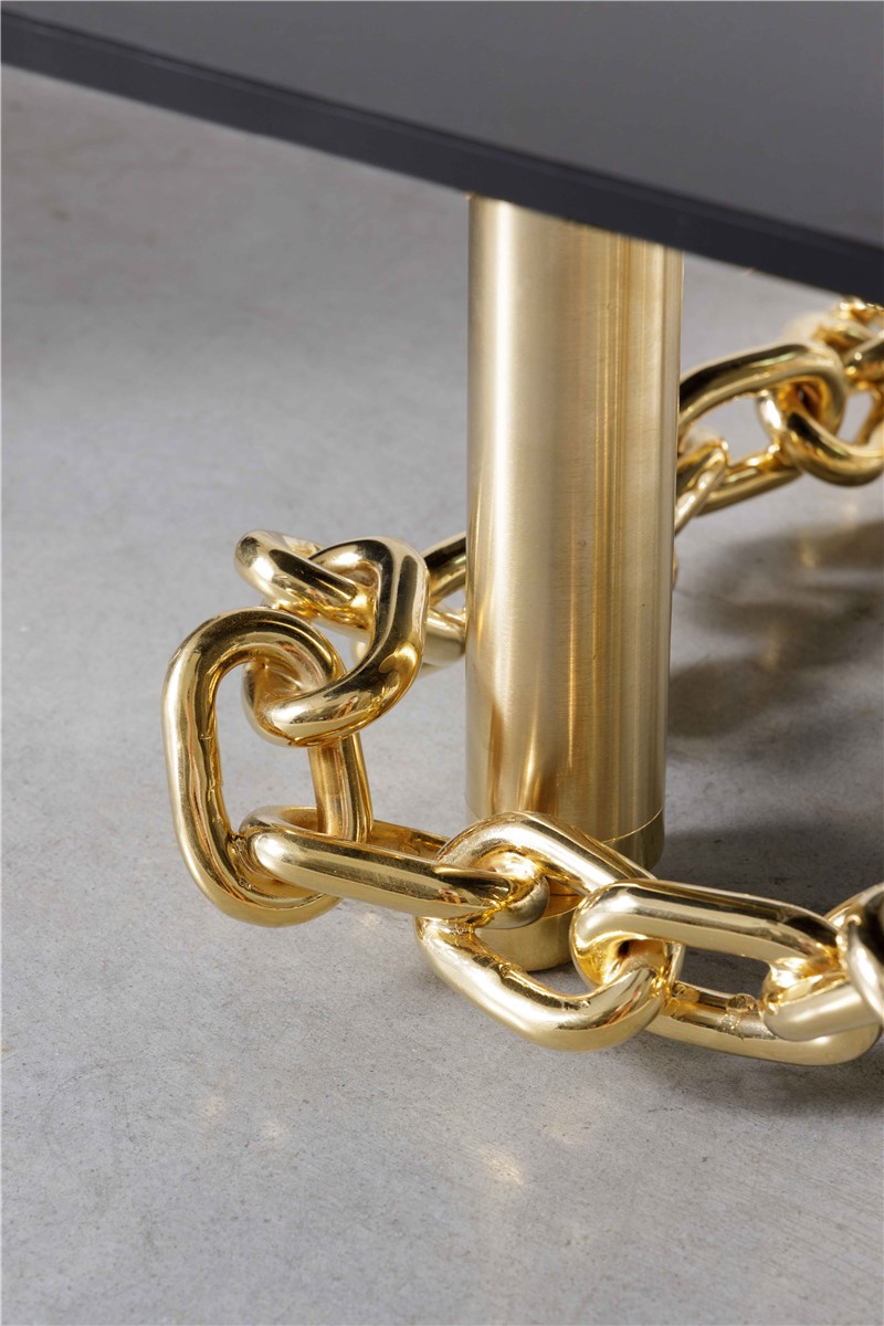 Coffee table in golden metal with glossy black glass top