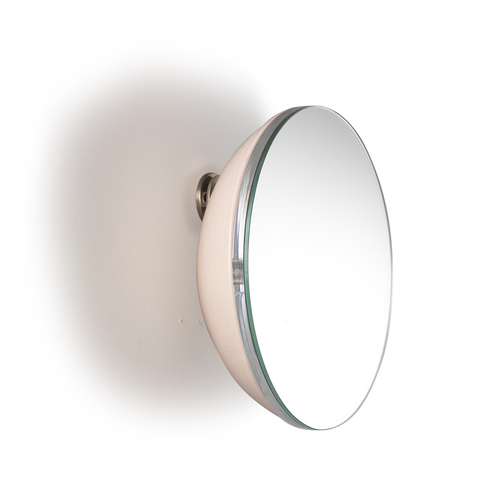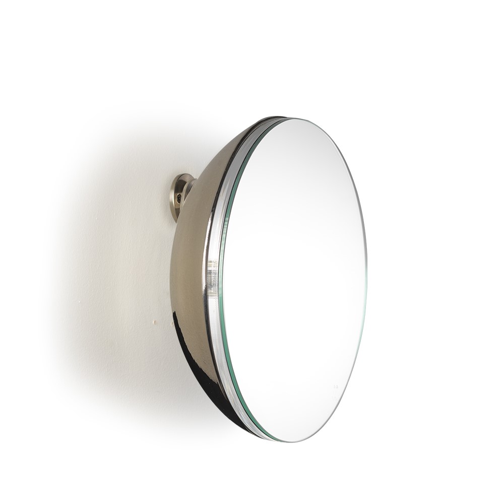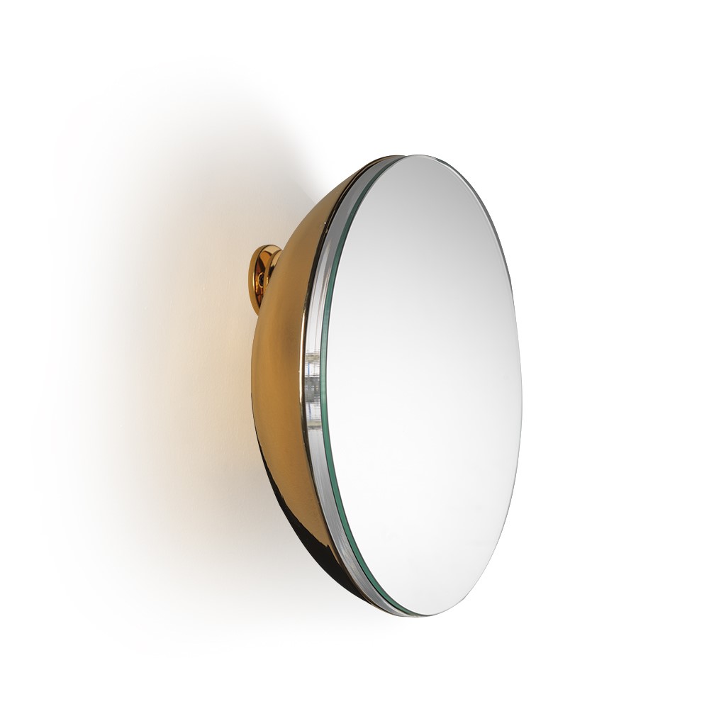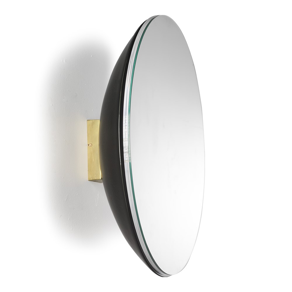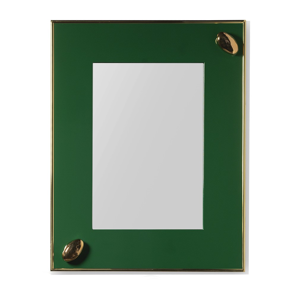 Frosted metal mirror. Frame with double lacquer: orange yellow outside and blue inside. The mirror is smoky but available in clear finish. You can position vertically and horizontally.