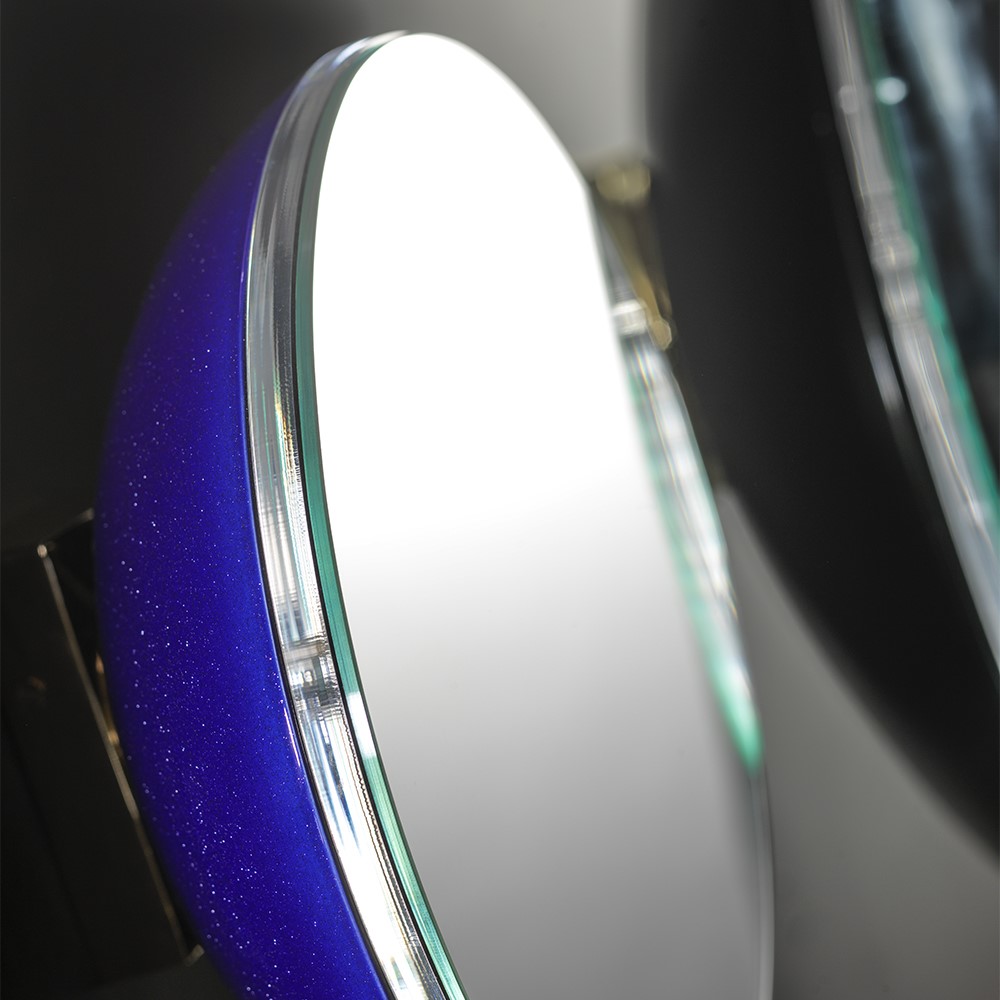 Mirror in glazed majolica. The mirror is mounted on a Plexiglas top. Possible to illuminate with a soft light around the mirror. Pink glaze.