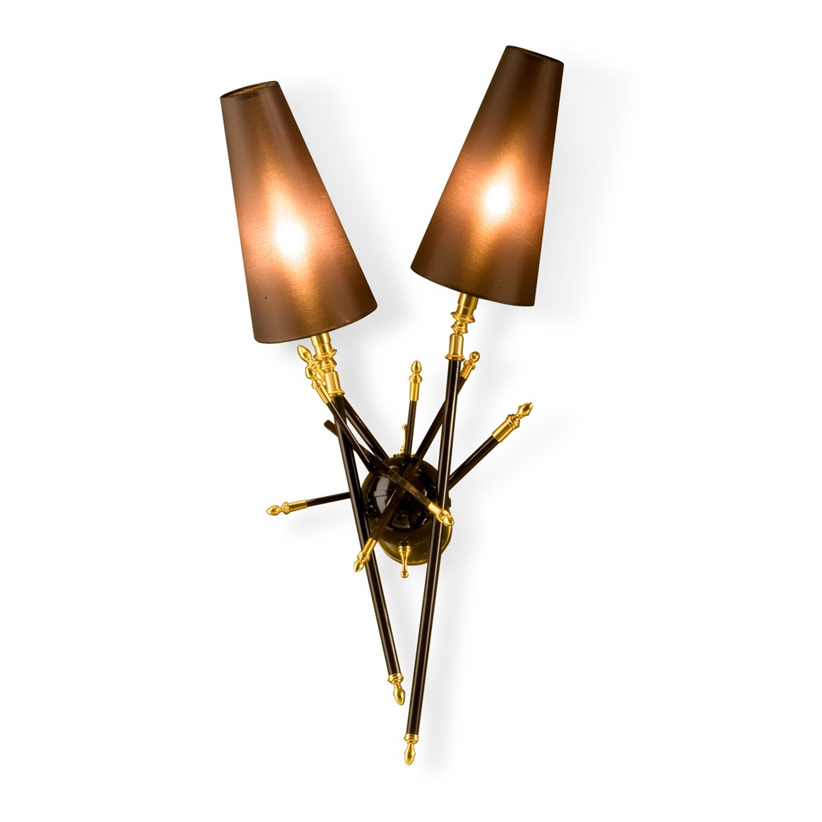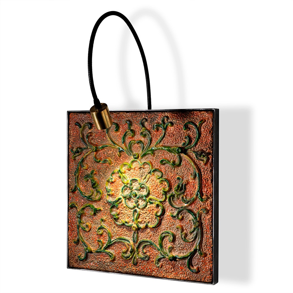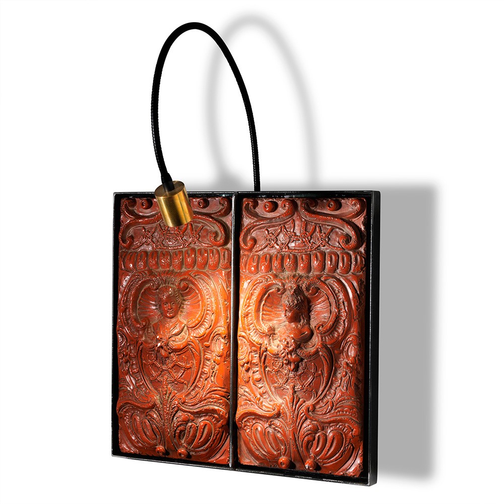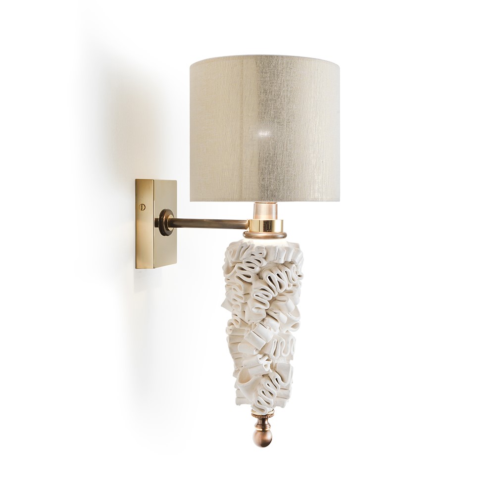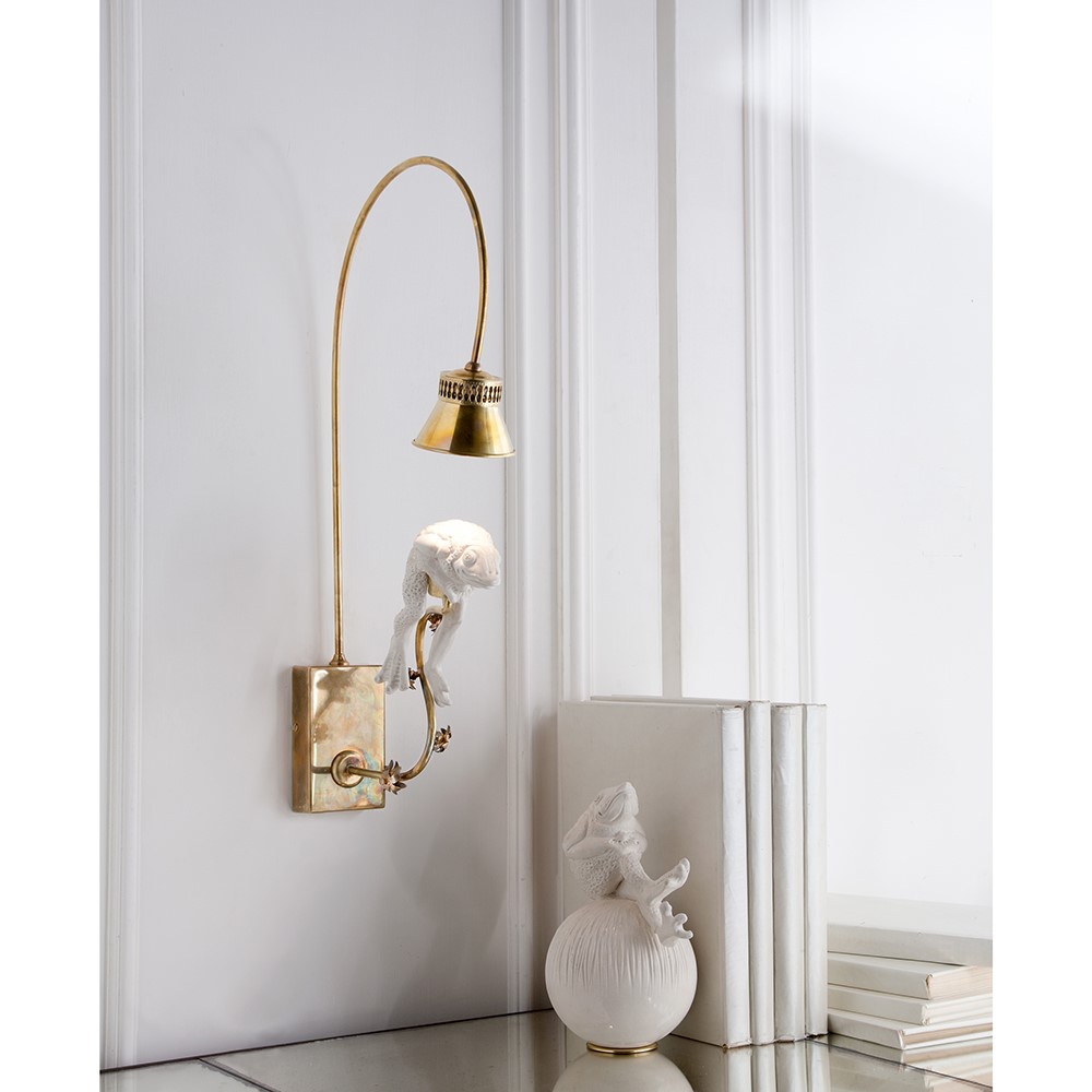 The wall light consists of a frog majolica made in detail by the hands of our craftsmen and then glazed in white. The structure is made of natural hand-forged brass. The small roses welded under the support of the frog embellish and give a romantic vein to this applique truly original. It’s suitable for classic and contemporary environments as well as for the living zone, can adorn entrances, corridors and sleeping area pretending to be a bedside light. On request it can be modified, as well as the lampshade.