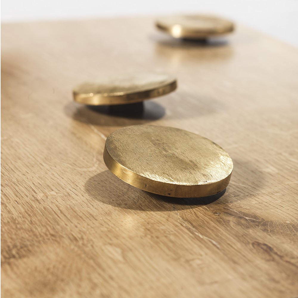 HISTORICAL ITEM OUT OF PRODUCTION - Console with top in natural oak. With 7 metal nails the pin head on nail is in natural brass with fabric effect.
