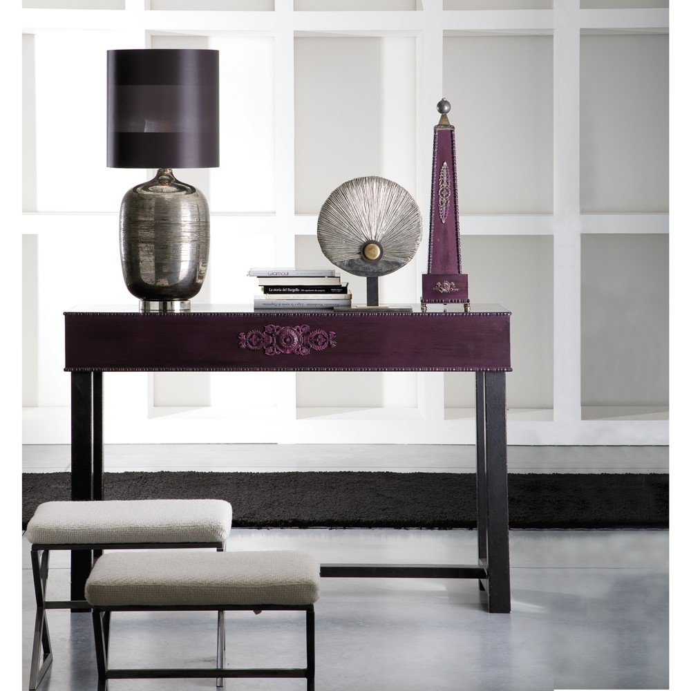 HISTORICAL ITEM OUT OF PRODUCTION - Wooden console table, plum colour lacquered. Black legs. Coloured bronze details.