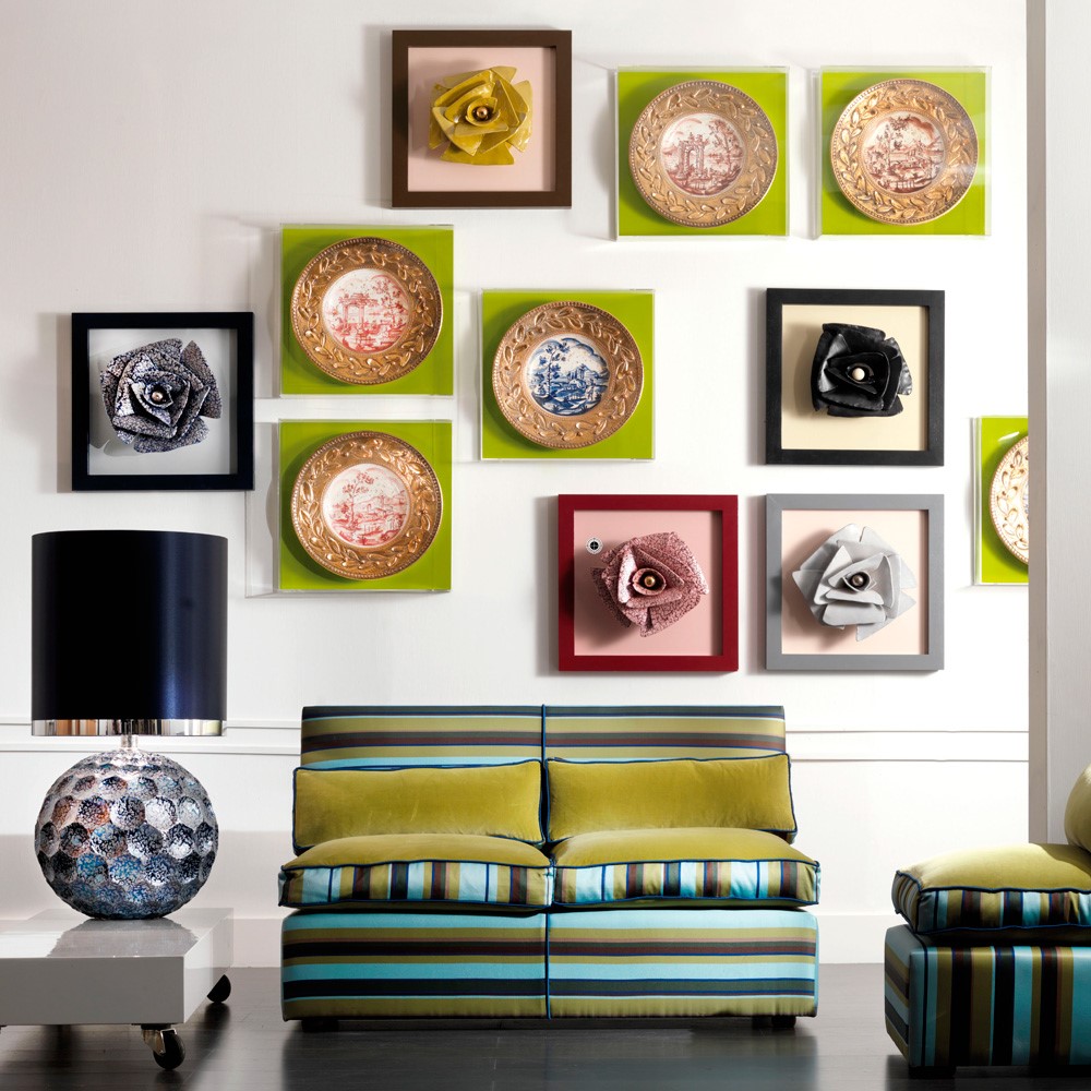 HISTORICAL ITEM OUT OF PRODUCTION - Series of pictures with central hand made and glazed majolica camelia. Hand lacquered wooden frame and picture bottom.