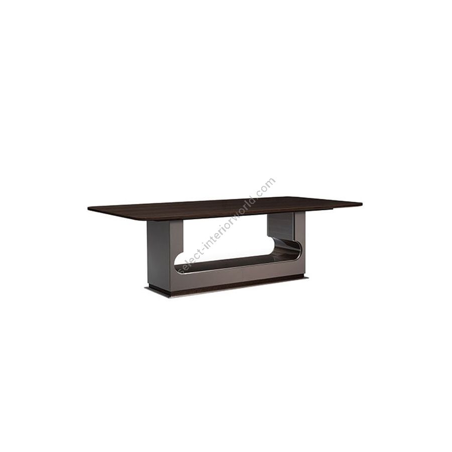 Lock ist ein Esstisch, der luxuriöse Empfangsräume bereichert. Die Natürlichkeit des Holzes wird durch den Lackeffekt sowohl der Ablage als auch der Innenseite des Untergestells noch verstärkt. Diese Elemente spiegeln die Umgebung wider und verdoppeln so die dekorative Wirkung des Raumes. Er eignet sich perfekt für die Einrichtung klassischer Esszimmer mit modernen Akzenten: Seine Brillanz und Eleganz passen perfekt zu beiden Stilen.