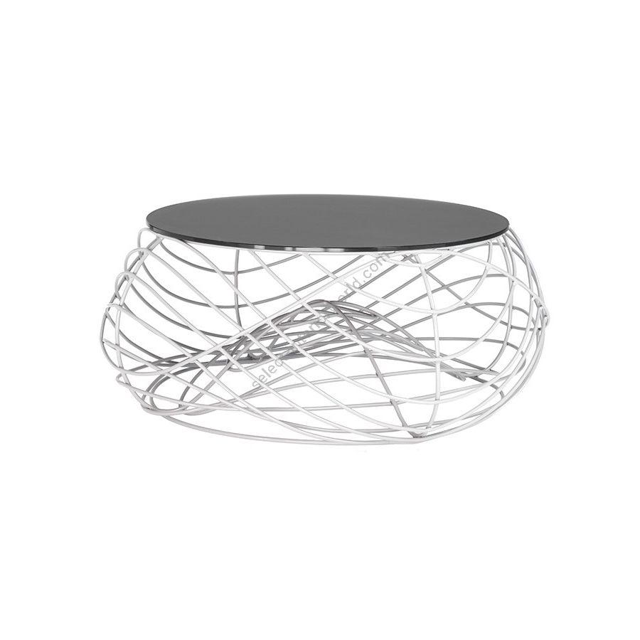Couchtisch aus pulverbeschichtetem Aluminium, Platte aus gehärtetem Glas, 12 mm dick.