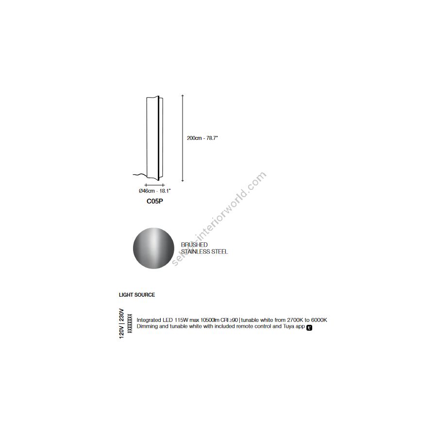 Körpergröße: cm: Ø 46 x H 200/ Zoll.: Ø 18,1" x 78,7"