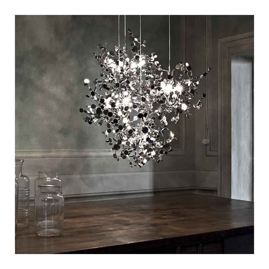 Designer Dodo Arslan kreiert mit dieser Pendelleuchte eine schimmernde Wolke. Silber besteht aus Metallscheiben, die von Terzani-Handwerkern sorgfältig von Hand zu Clustern geformt wurden. Nach dem Anzünden strahlen die mehrfach abgewinkelten Oberflächen der Scheiben ein sanftes, schimmerndes Leuchten aus. Argent ist in Edelstahl, vergoldet und roségold erhältlich.