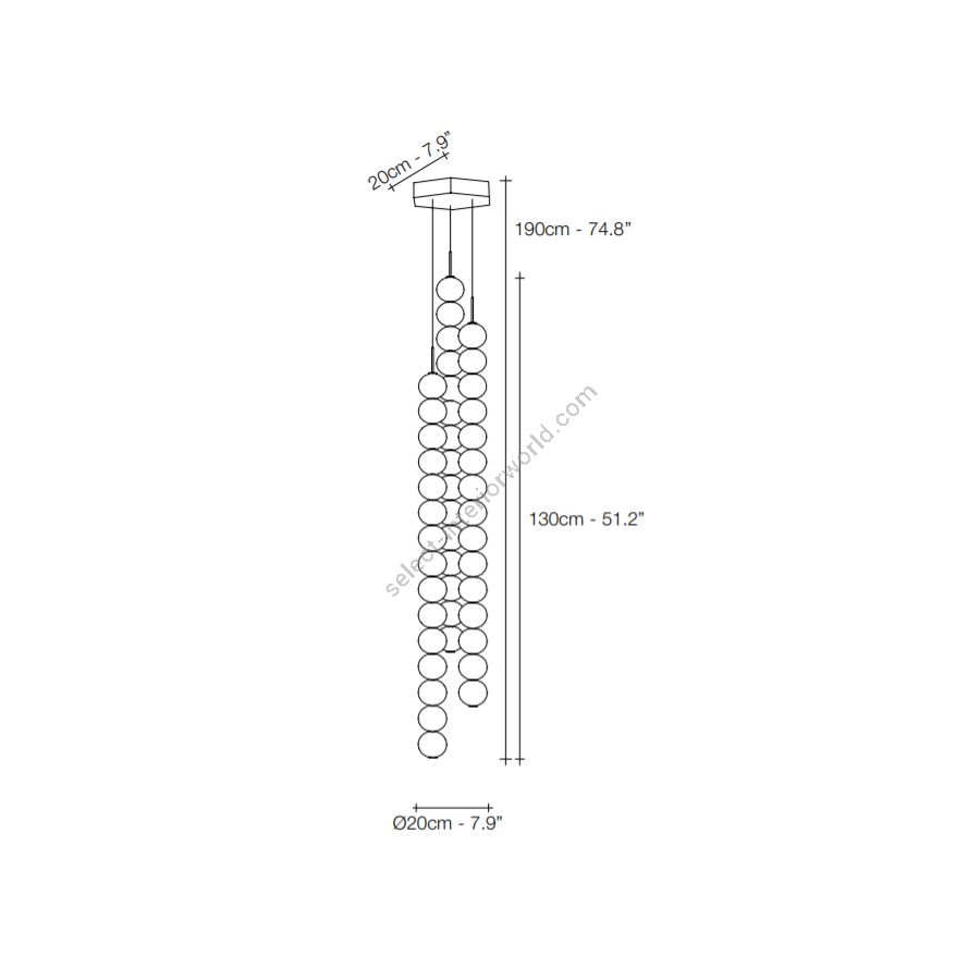 cm.: 190 (H1/130+H2/60) x 20 x 20 / inch.: 74.8" (H1/51.18"+H2/23.62") x 7.87" x 7.87"