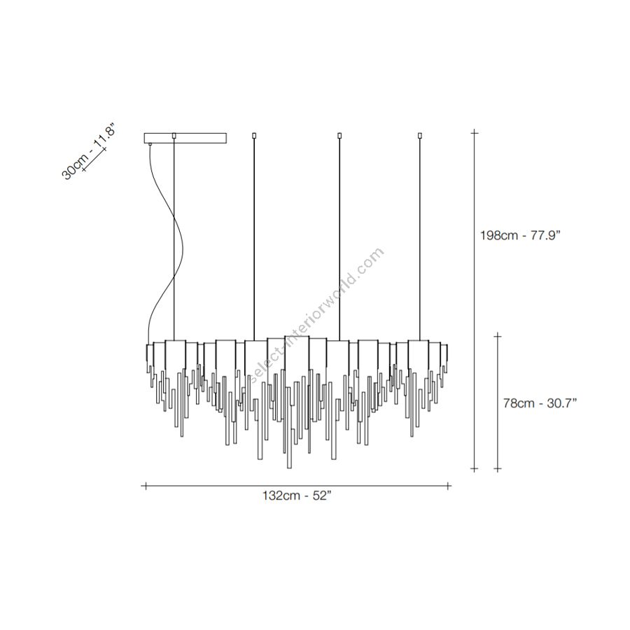 cm.: 198 (H1/78+H2/120) x 132 x 30 / Zoll.: 77.95" (H1/30.71"+H2/47.24") x 51.97" x 11.81"