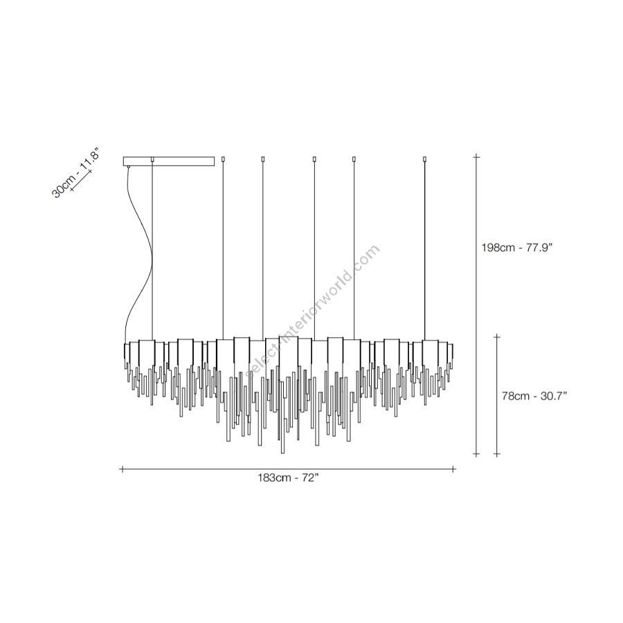 cm.: 198 (H1/78+H2/120) x 70 x 30 / Zoll.: 77.95" (H1/30.71"+H2/47.24") x 27.56" x 11.81"