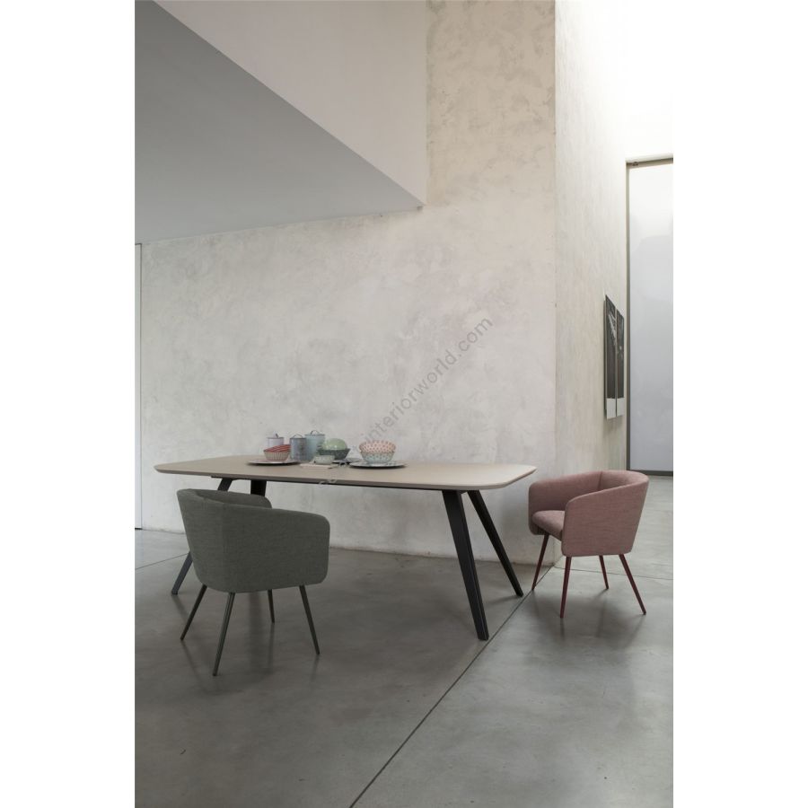 The deep, rounded seat encourages relaxation and conversation. The perfectly balanced volume of the body matches impeccably with the characteristic support frame, thus redefining the typical 'tub' chair. The internal plywood body and the polyurethane and Dacron upholstery, flanked by a beech frame, provide excellent comfort. Balù comes in many colour variations and neutral or tone-on-tone shades, in line with the collection colours.