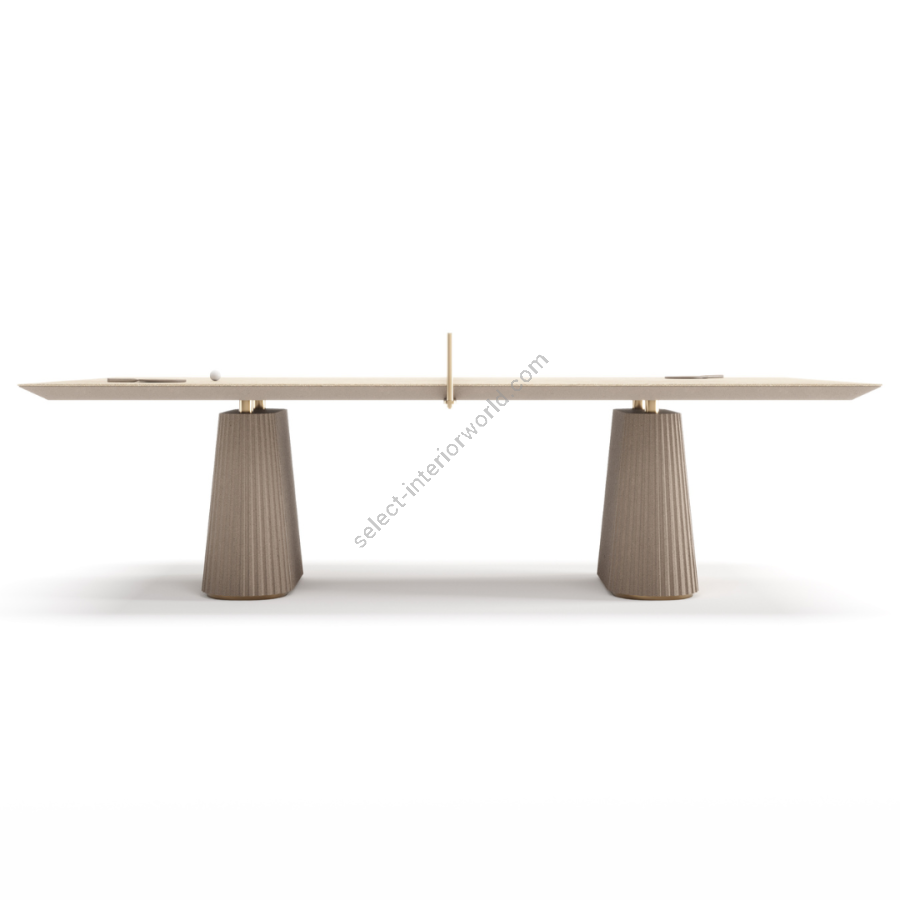 Die Beine sind wunderschön aus geriffeltem Harz gefertigt und mit einer Lackierung in Betonoptik versehen, die an griechische Säulen erinnert. Das Spielnetz lässt sich leicht entfernen und verwandelt den Tisch in einen Ess-/Konferenztisch.