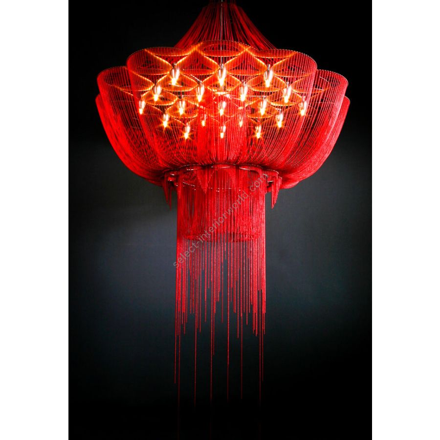Ein hängender Kronleuchter, inspiriert von der heiligen Geometrie, die als „Blume des Lebens“ bekannt ist. Beleuchtet durch 7 oberflächenmontierte G9-Halogen- oder LED-Lampen.