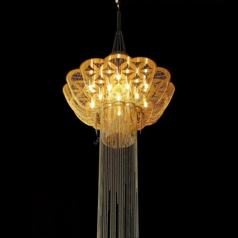 Ein hängender Kronleuchter, inspiriert von der heiligen Geometrie, die als „Blume des Lebens“ bekannt ist. Beleuchtet durch 13 oberflächenmontierte G9-Halogen- oder LED-Lampen.