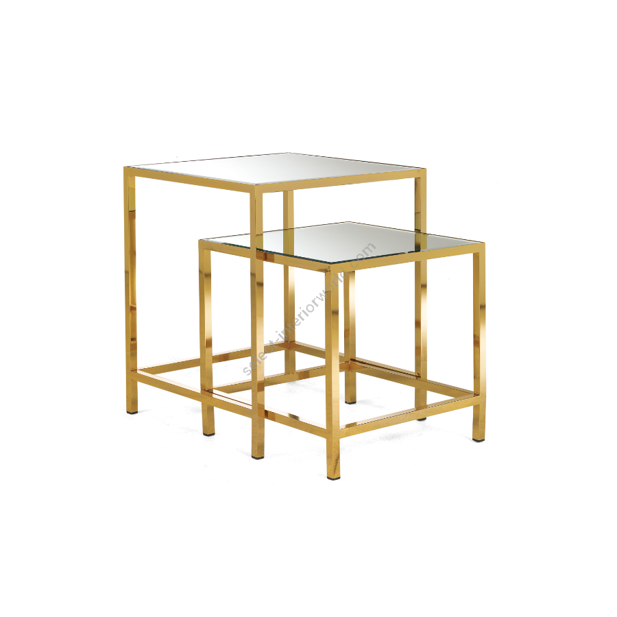 Set aus zwei Messingtischen mit verspiegelter Platte