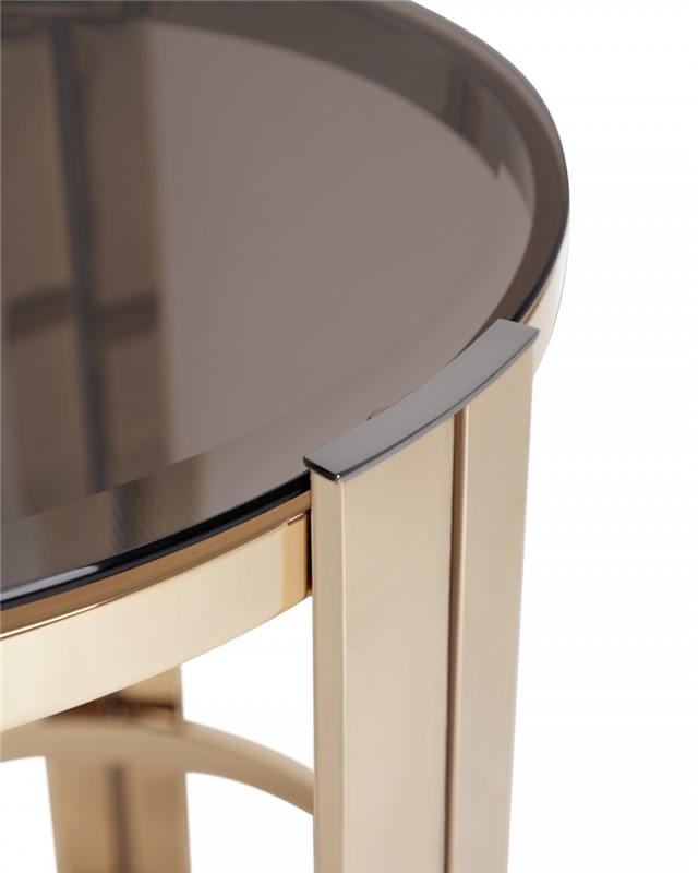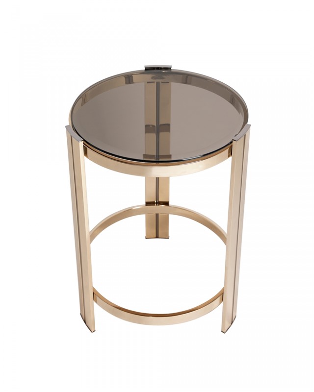 Flaunting a luxurious gold finish, this stunning piece adds an element of intrigue to your home decor. The combination of noble materials like brass and glass creates an opulent feel on this small table that carries enchantment and helps to develop perfect scneários near the sofa or even the bed.