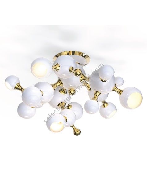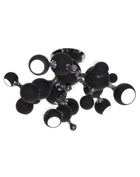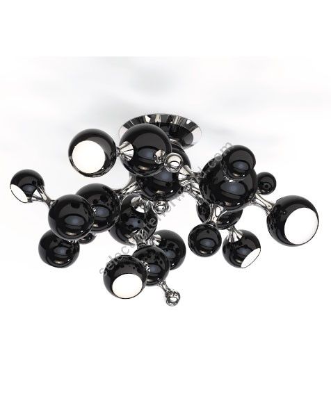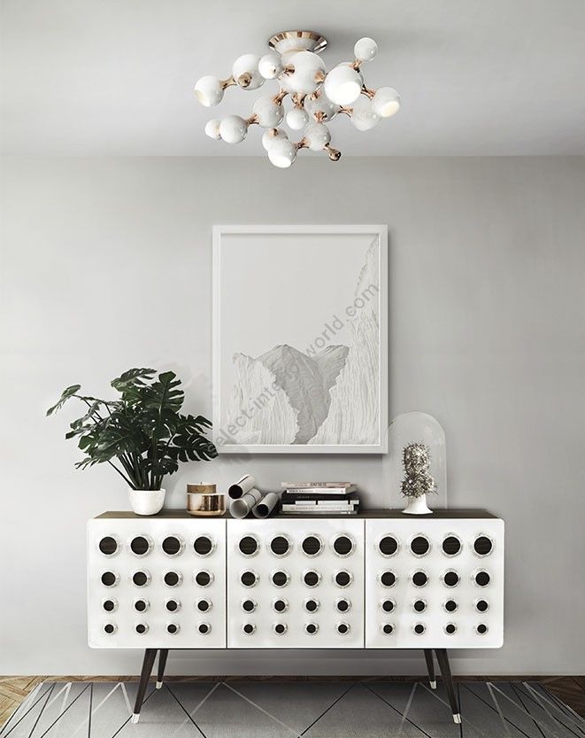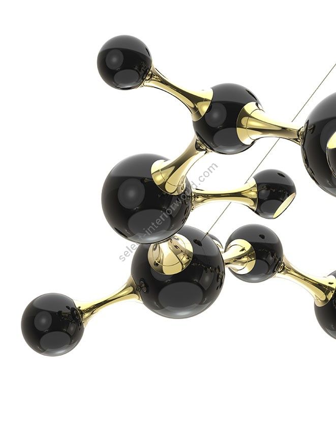 Atomic ceiling lamp is inspired by the molecular composition of the atom, thus representing a new found interpretation of the mid-century modern era. With a set of spotlights all arranged much similar to molecular forms, this modern ceiling light comes to redefine what mid-century lighting is all about. Handmade in brass and steel by Portuguese artisans, Atomic ceiling light boasts an exquisite gold-plated finish on the body, while the shades are lacquered a glossy black on the outside and a gold powder paint on the inside. It can be used as a suspension lamp in a modern entryway, and it also works beautifully as a bedroom ceiling lamp, especially in kids’ bedrooms.
