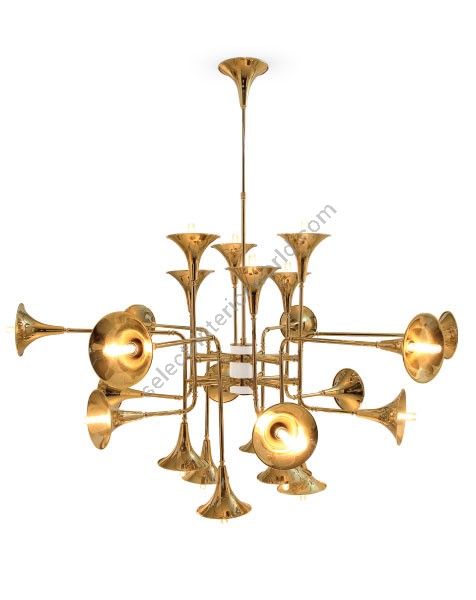 Brubeck mid-century modern chandelier is inspired by one of the foremost exponents of cool jazz: Dave Brubeck. This unique oval chandelier represents the sophistication and finesse of the American jazz pianist, displaying a very luxurious feeling. DelightFULL’s skilled artisans handmade this oval chandelier in brass, covering it with a gold-plated finish, which can be customized in multiple other finishes. The result of this outstanding creation is a functional dining room chandelier with sculptural shapes..