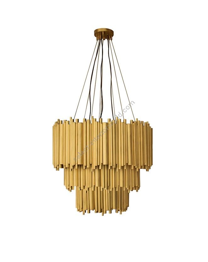 Brubeck mid-century modern chandelier is inspired by one of the foremost exponents of cool jazz: Dave Brubeck. This unique lighting design represents the sophistication and finesse of the American jazz pianist, displaying a very luxurious feeling. DelightFULL’s skilled artisans handmade this round chandelier in brass, covering it with a gold-plated finish, which can be customized in multiple other finishes. The result of this outstanding creation is a functional dining room chandelier with sculptural shapes.