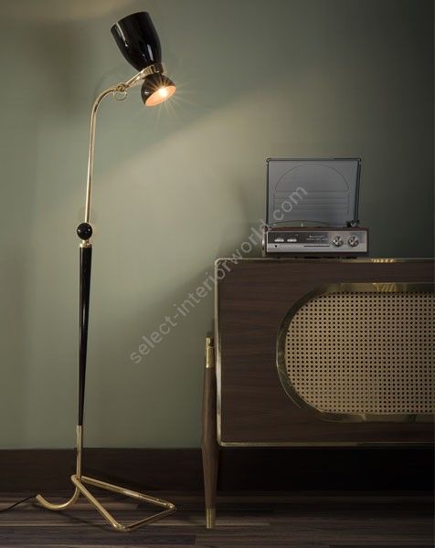Amy vintage floor lamp was inspired by the great jazz singer and songwriter: Amy Winehouse. Amy has a vintage retro style that embodies the soul of the British artist and the 50’s interior design style. With a glossy black lamp shade that bear a resemblance to Amy’s legendary hair and a small gold powder paint detail that recall us of her golden earring, the brass floor light suits the most demanding mid-century modern setting. The flexible lamp shade is what makes this modern lamp, the perfect reading light for your vintage bedroom or retro home office, since it will point in any direction you need. Note that Amy floor lamp features a footswitch that is on the cord, and the brass detail on the lamp shade has the sole purpose of adding a more modern aesthetics feeling.