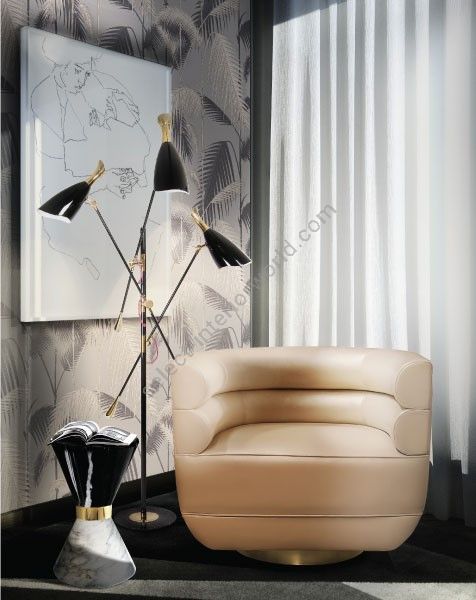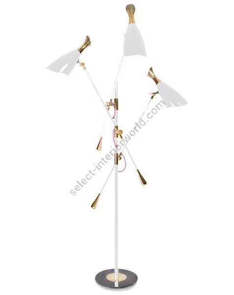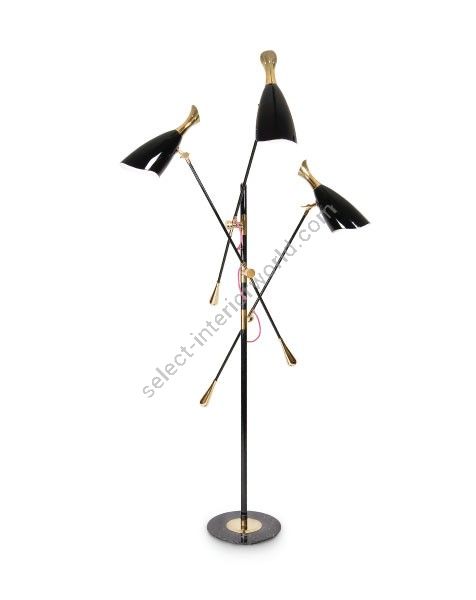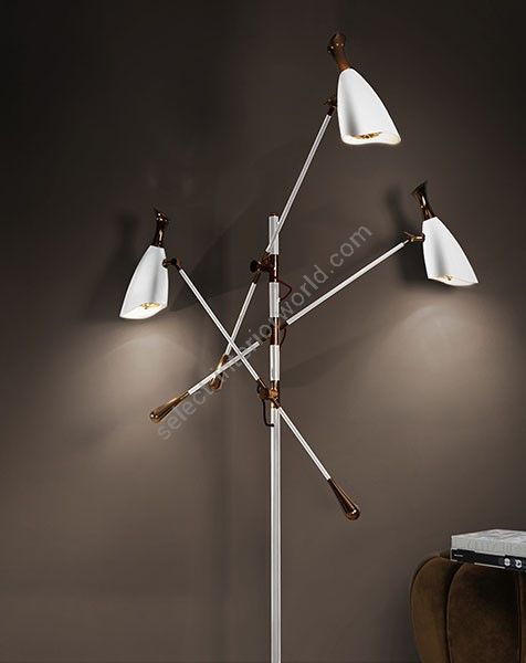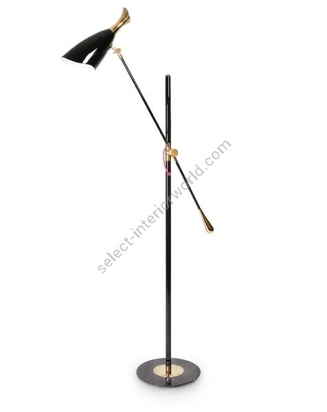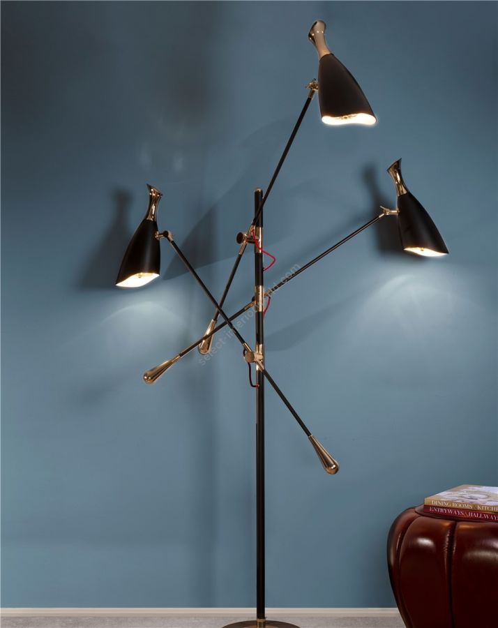 Duke Ellington has been an inspiration to the world to many artists and musicians. Therefore, DelightFULL’s designers have decided to pay a tribute to this iconic jazz musician and create Duke floor lamp. With a short silhouette and a single swing, Duke floor lamp is a retro-styled accessory for every single mid-century modern interior design. Each cone lamp shade is conducted by a brass arm and its counter-weight. The matte black shades drape on the sides to reveal a white interior and have gold plated accents at the sockets. The three-cone shades that adjust vertically and horizontally have an overall height of 63.7 inches.