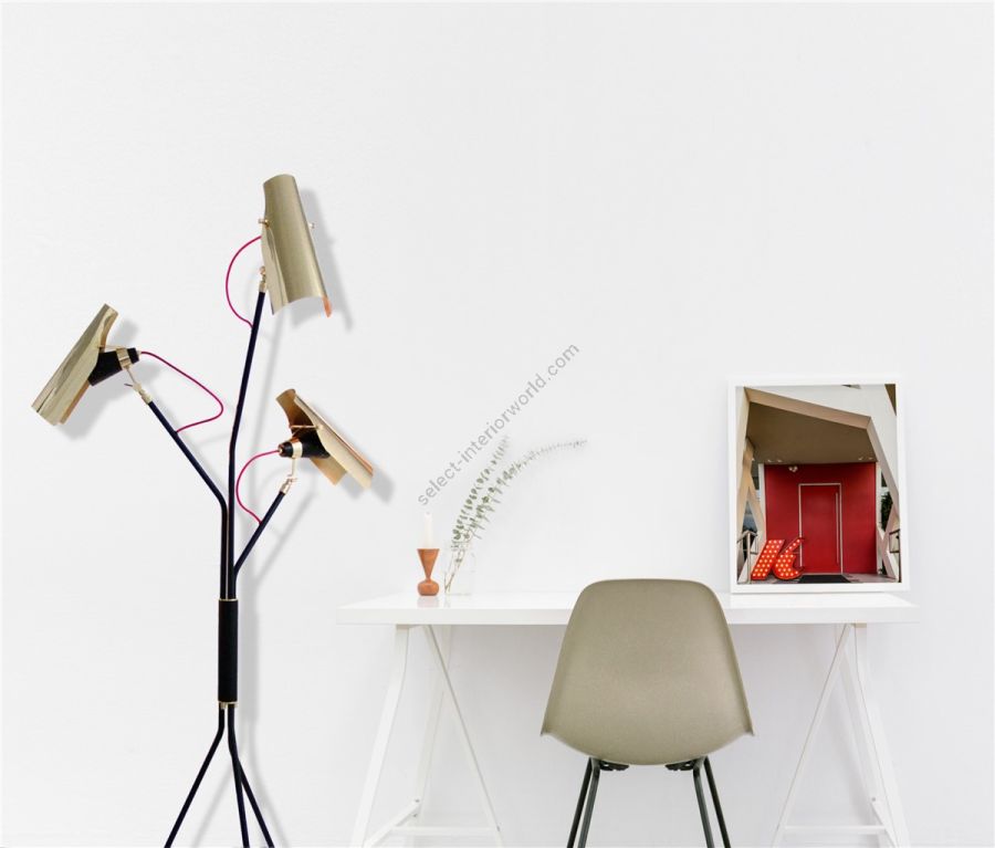 From music to cinema, or even design, Michael Jackson was and still is one of the greatest icons of all times. That’s why DelightFULL’s designers decided to pay a tribute to this amazing performer, by designing one fabulous piece that embodies rhythm, exposed mechanical elements, and luxurious finishes, never forgetting the inspirations for the 80s. We present you Jackson floor lamp. This tripod floor lamp is the perfect spin from mid-century design classics to a commemoration of pop culture. Tailor-made in brass, Jackson floor light features three lamp shades with matte black and gold plated finishes and textile red wires. With flexible lamp shades, this mid-century floor lamp points light wherever a task light is needed.
