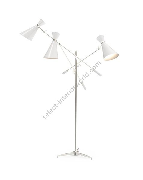 Stanley floor light is a style icon of the fifties and sixties. With the possibility of having 1 to 3 moveable arms, this vintage style floor lamp will add effortless style to your mid-century modern reading nook. The 3-light floor lamp holds three boom arms, creating custom light effects due to its glossy black & matte white lamp shades. Each shade is balanced by a weighted handle. With clean lines and a sculptural shape, this gleaming nickel plated lamp will make you want to curl up with a book in your reading chair under the warm glow of your mid-century reading light.