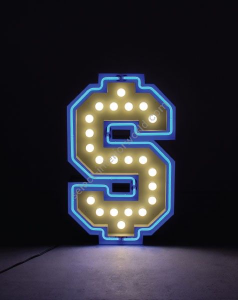 As always, DelightFULL is here to delight everyone with its unconventional and irreverent taste. The marquee symbol has the ability to transform any room it steps in. Always unconventional, the dollar symbol is here to make any design project even richer than what it is. With a height of 1 meter, this marquee lighting design can be a floor lamp or a wall mounted. The marquee lamp that can customizable on demand, is accessible on a mini version and fits perfectly into an interior design project.
