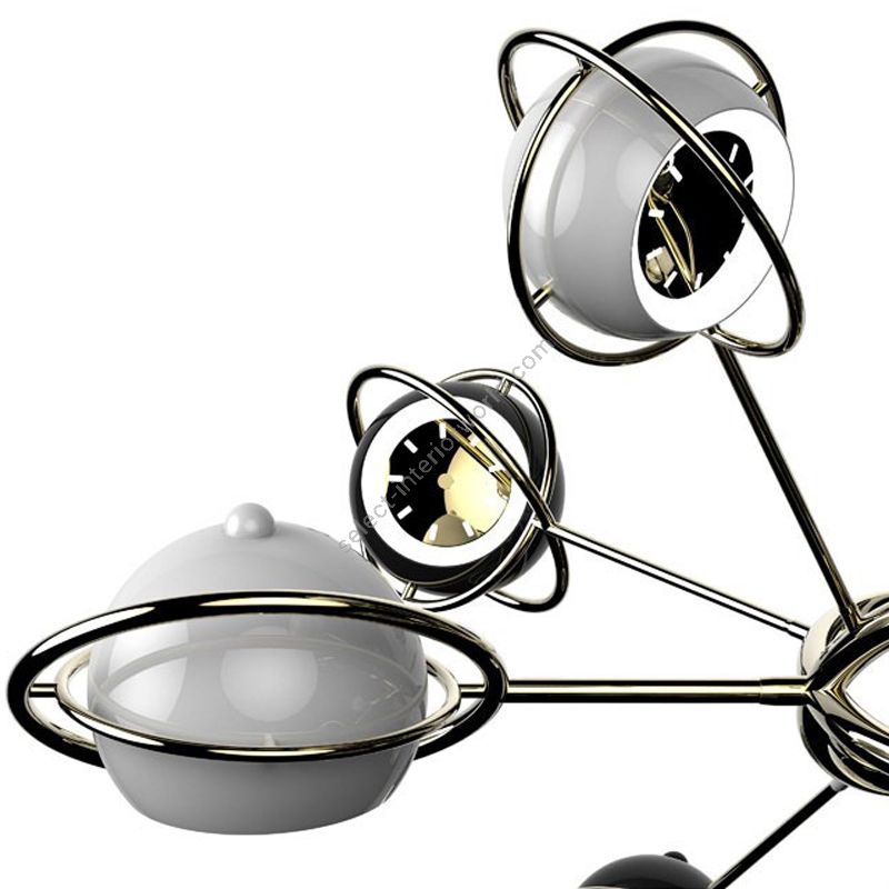 Inspired by the space with all its galaxies and planets, we are proud to present Cosmo. A dynamic piece full of energy and versatility, since all its spheres can rotate within 2 axis which enable it to cast light into any spot. Composed by 11 illuminating spheres of different sizes, the majestic lighting piece is made in aluminum and a brass body structure.