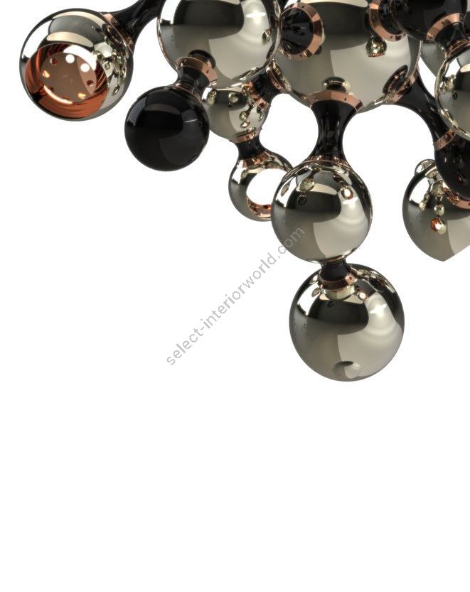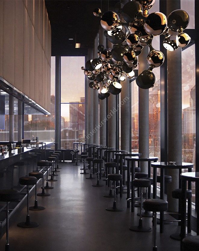 Atomic light pendant by DelightFULL is a modern design interpretation of the atomic age, inspired by the composition of the atom. Building this unique lighting design using materials such as brass, steel and aluminum, DelightFULL’s skilled artisans arranged it in an abstract composition, very similar to the non-conventional molecular forms. Both a glossy black and a gold-plated finish were used for the body, while glossy black and gold powder paint were the chosen finish of the shades. This stylish suspended ceiling light is the right fit for a contemporary living room, or even for a more modern master bedroom.