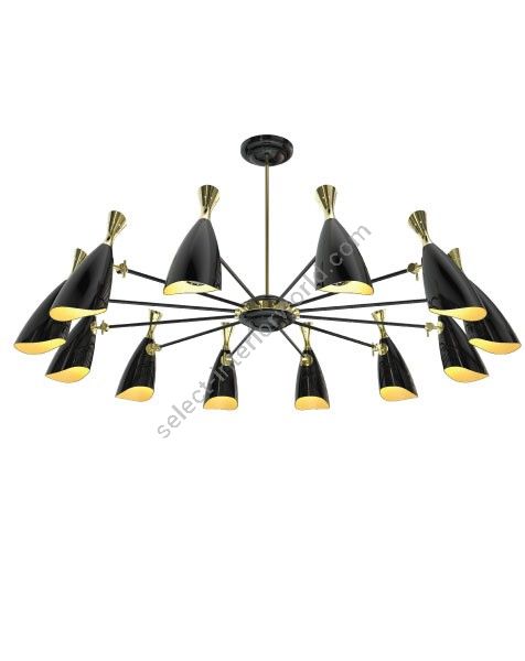 Duke Round is a modern pendant lighting design that boasts a heavy nostalgic 70s groove vibe. Inspired by the simplicity of the 1970s, DelightFULL’s designers were able to create an iconic modern ceiling light that suits the most demanding setting. Produced in Portugal, it is handmade in brass and aluminum. The body, made of brass, has both a matte black and a gold-plated finish, while the shades are lacquered a glossy black on the outside. The inside is matte white, but it can also have a gold powder paint finish. It is a stunning bedroom ceiling light, but this large ceiling light can also be considered for other settings, such as a mid-century modern living room.