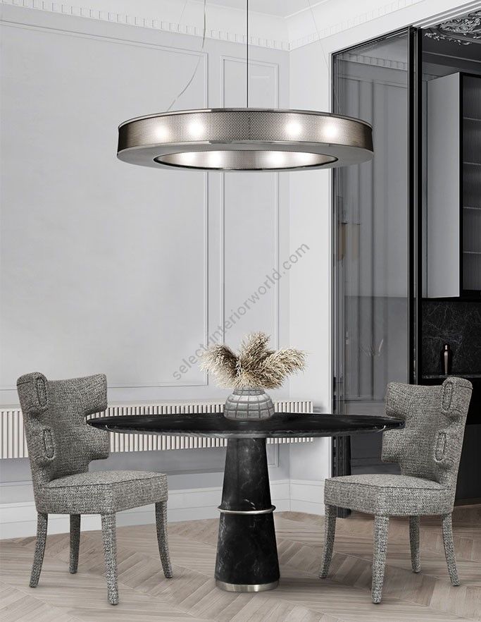 With a modern design, Marcus suspension has a delicate aftermath for a well-lit home. A customizable piece, this modern lighting design fits in any modern style home decor, suited for the most exquisite rooms. A clean cut look with a timeless aesthetic, this modern suspension lamp is the suited one for a contemorary style decor as well as a modern lobby hotel design.