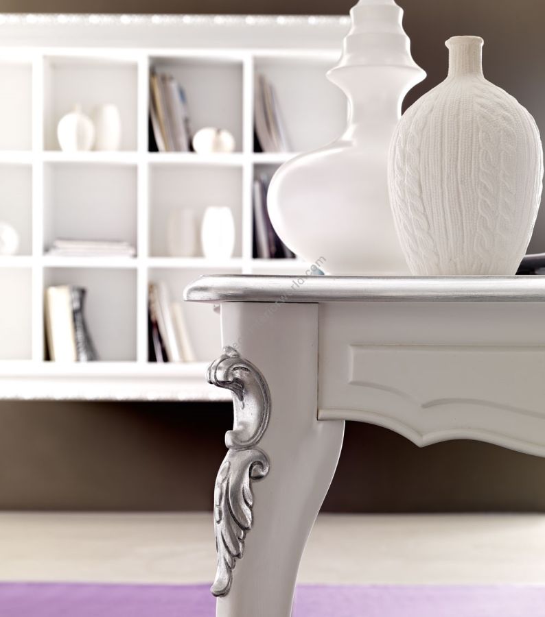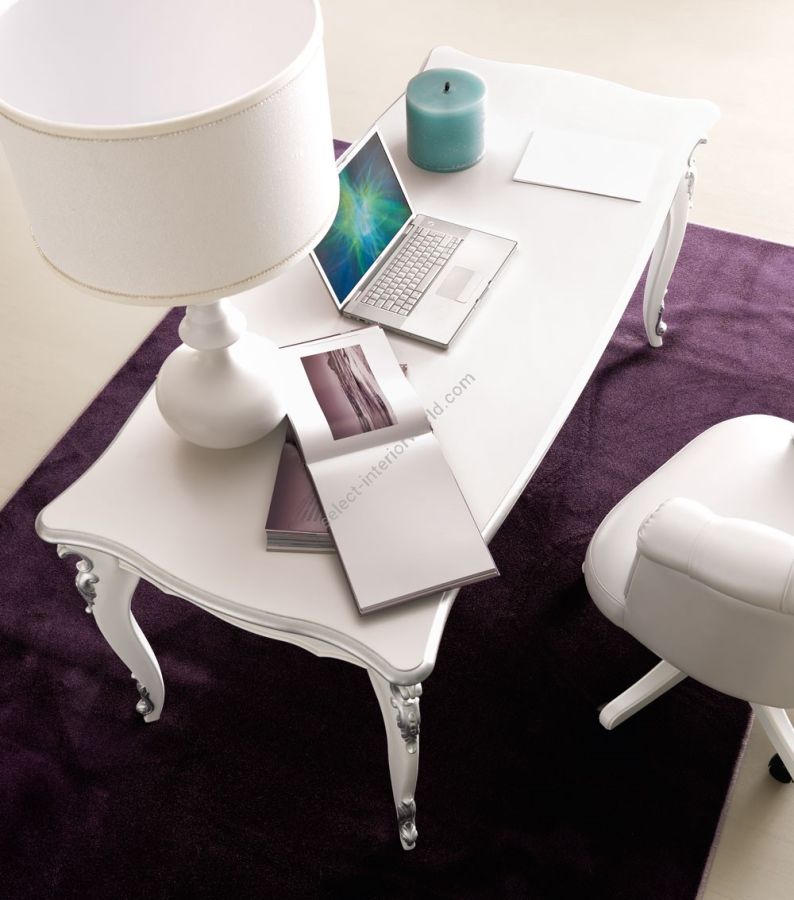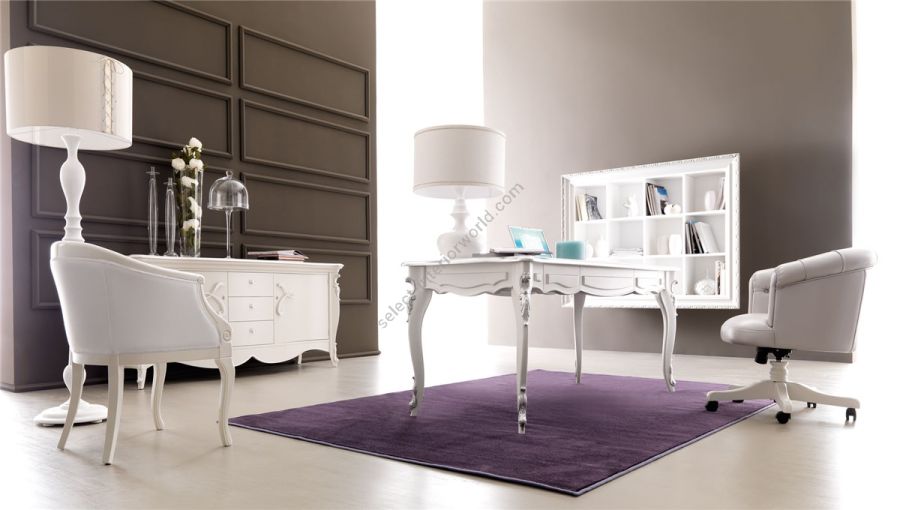 Solid limewood legs with hand shaped carvings. Mdf top. Birch plywood drawers. A refined collection inspired to classic patterns. The use of carvings on the massive wooden structure, typical of the Renaissance, gives a refined and precious effect. Thewriting desk, available in 2 different sizes, decorate with style and refinement classic or contemporary interiors, thanks to the offer of a wide palette of finishings.