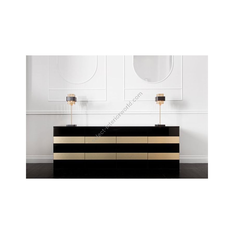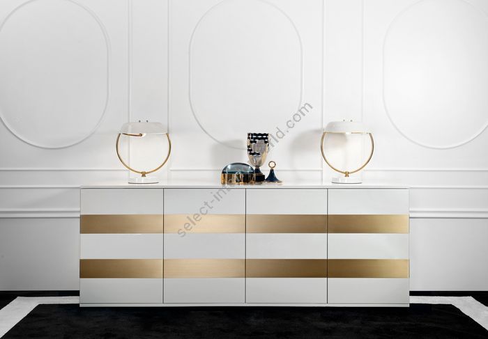 Yves cabinet comes with gloss lacquered finish with satin or gloss brass details.| Dimensions (HxWxD): | cm: 78x220x45 / inch: 30.71"x86.61"x17.72" |
