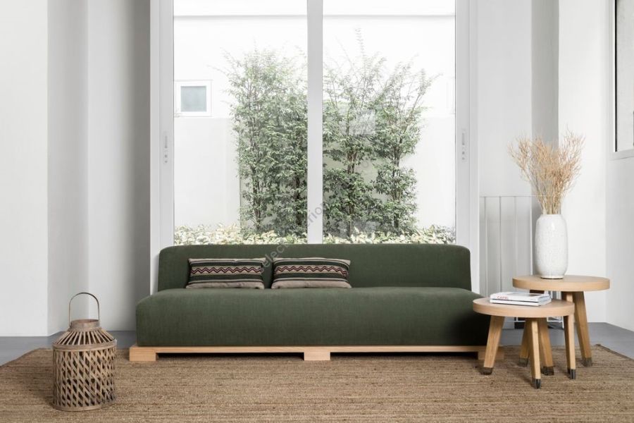 Bali is born in the sign of suspension and nature. Like the stilts of the island that gives it its name, combines the sense of emersion from a surface – the platform supports an enormous cushion, made comfortable by a backrest, and the two together make up a sort of raft – with the colors of nature and the spontaneous irregularity of materials.