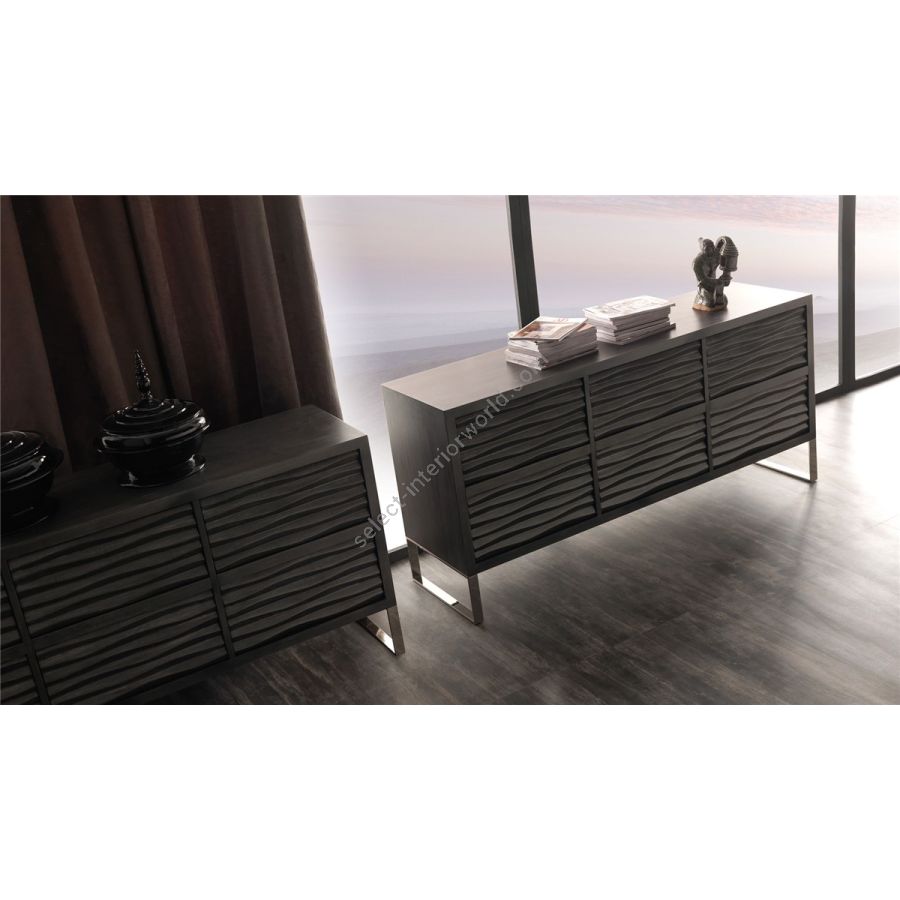 Wooden chest of drawers with a modern-contemporary line made with a precious carved wave pattern. Available in 4 or 6 drawer version with push-pull opening.