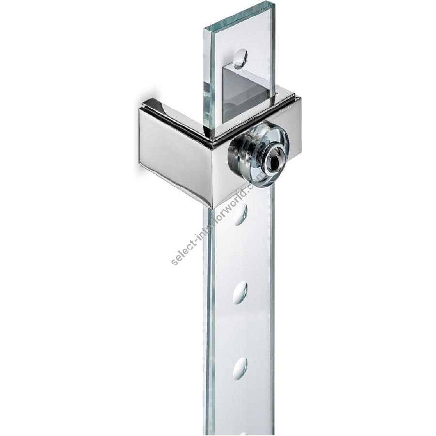 Structure made of shiny chrome-plated brass. Shiny sphere engravings on clear glass.