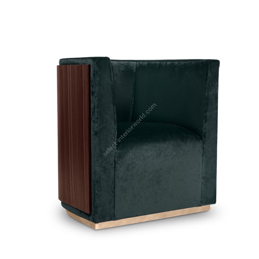 An outstanding piece with a moody and delicate nature that makes this an irresistible armchair. Using a rich upholstered fabric, Grace Armchair has a layered composition, combining a metal base with a wooden back. This mid-century turned modern armchair features a unique design that is highly inspired by the armchairs of the '50s and '60s.