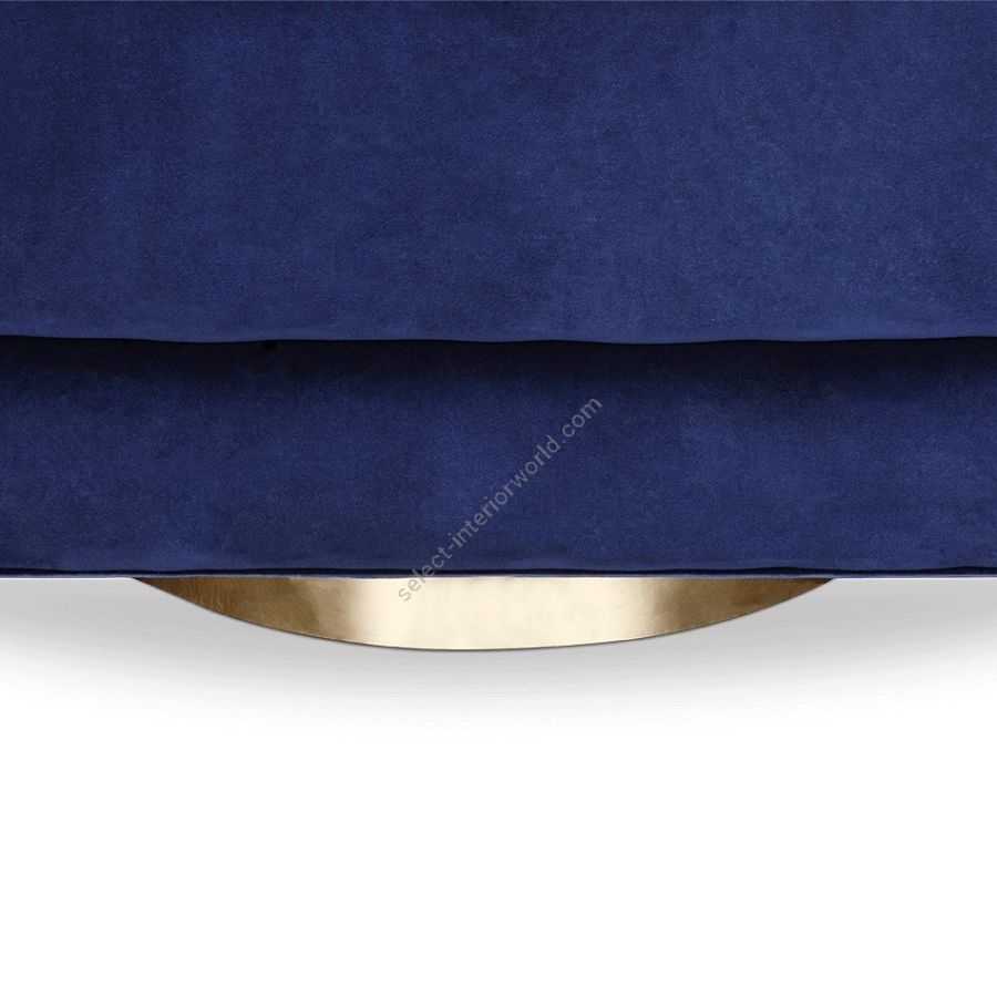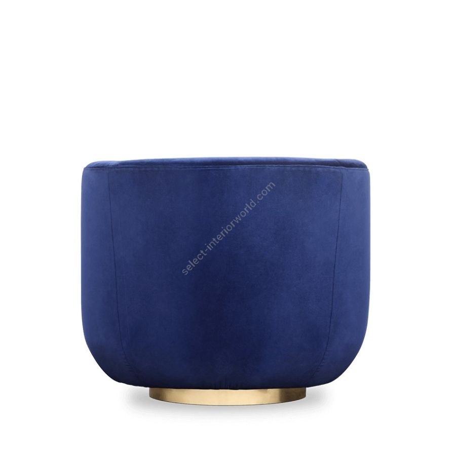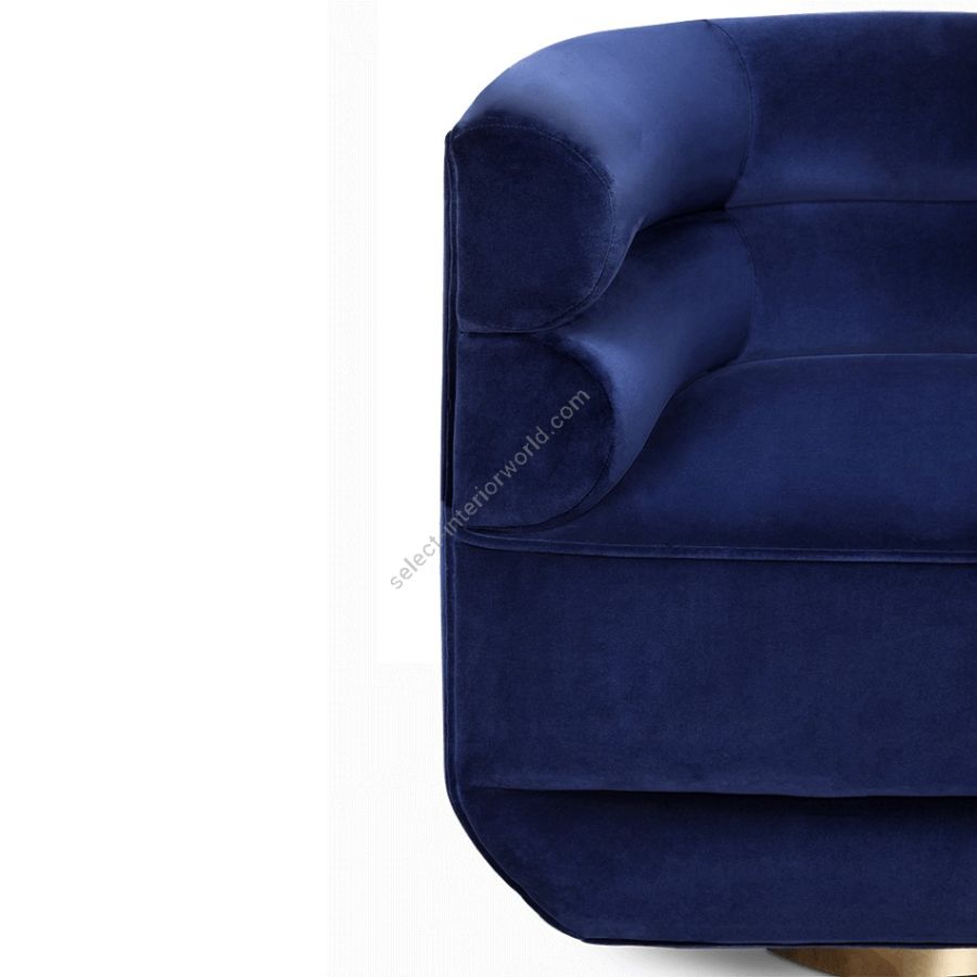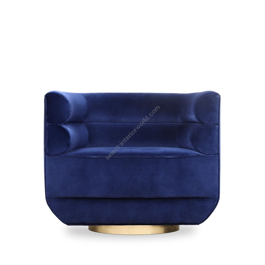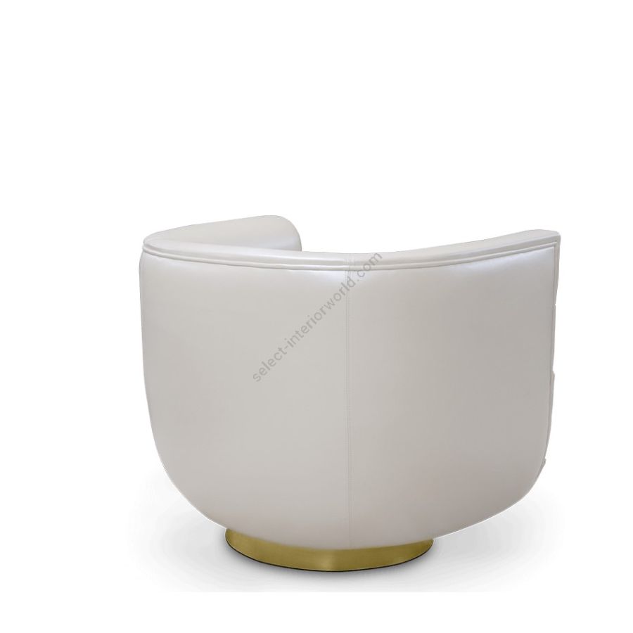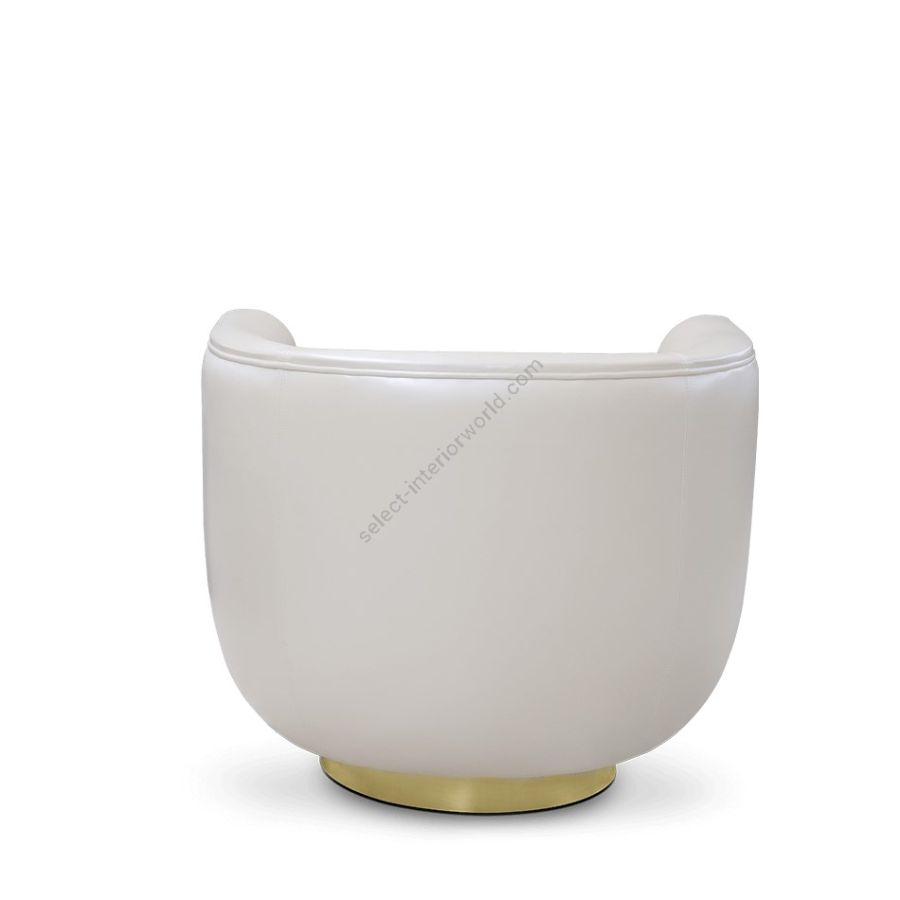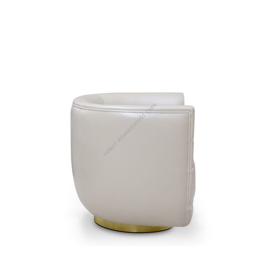 Inspired by mid-century retro designs, Loren features a simple and sophisticated design with a swivel golden brass base, and it is upholstered in leather. Due to its low back, it's a versatile chair fit for any room. The compact and curved look along with its rolled arms, make this a luxury statement piece.